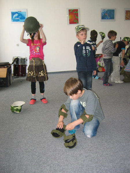 Začínáme si zkoušet vojenské pomůcky.