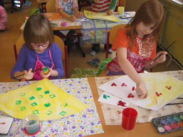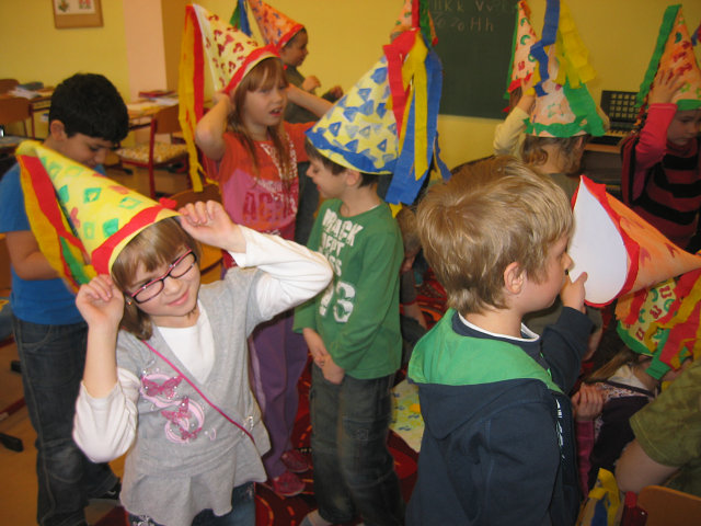 Při dokončení tolika klobouků pomohla paní učitelce maminka Elinky