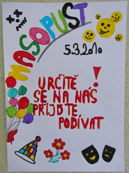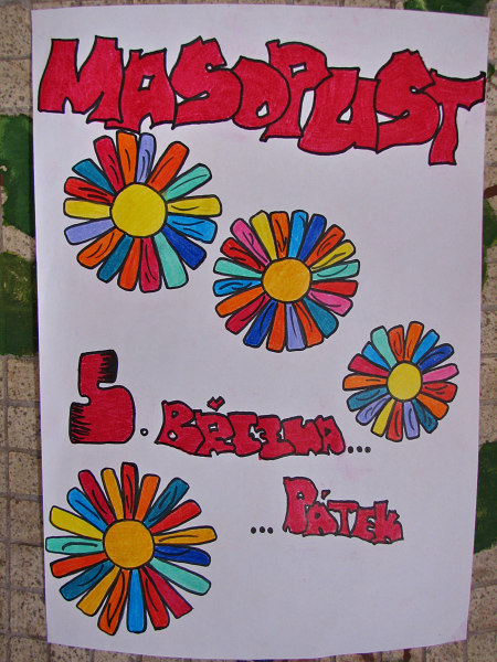 Plakáty zvoucí na masopustní veselici
