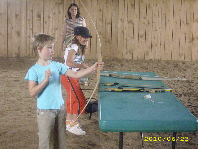 Na nedalekém ranči si zase zajezdily na koni a zkusily střílet z luku.