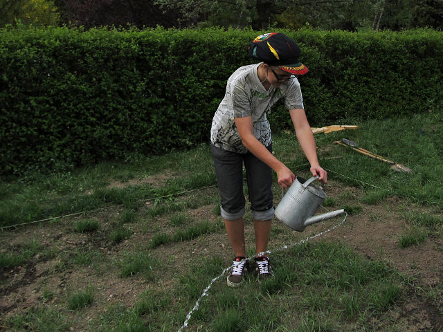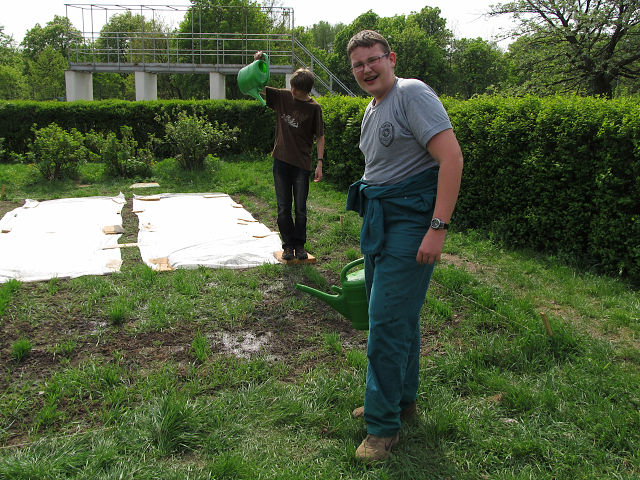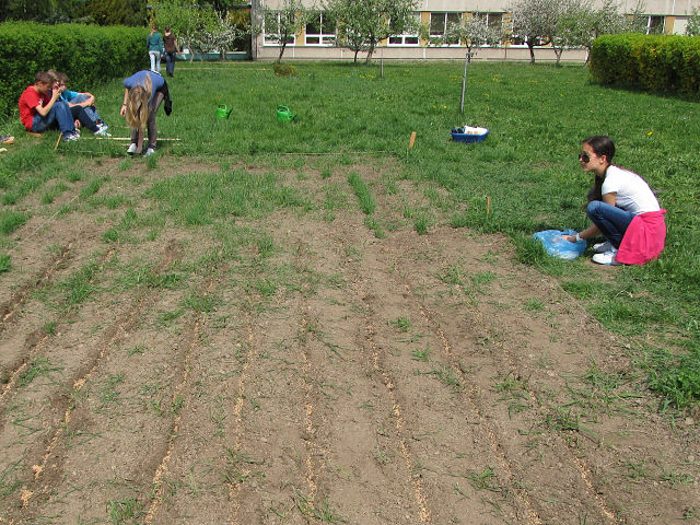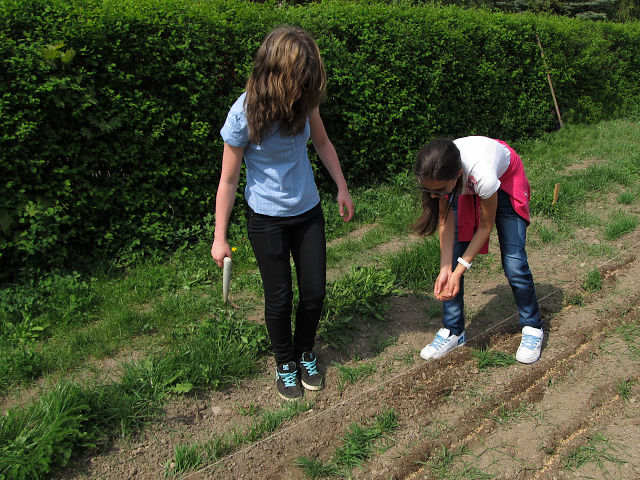VIII.A připravuje bylinkový záhon