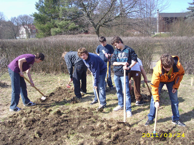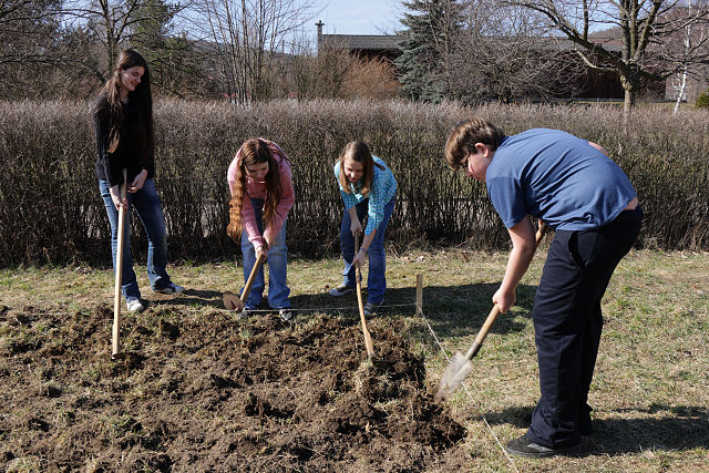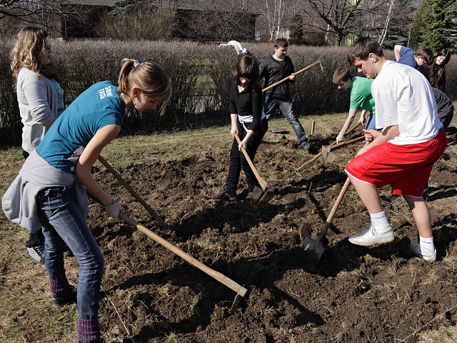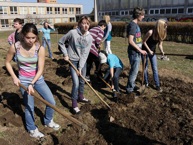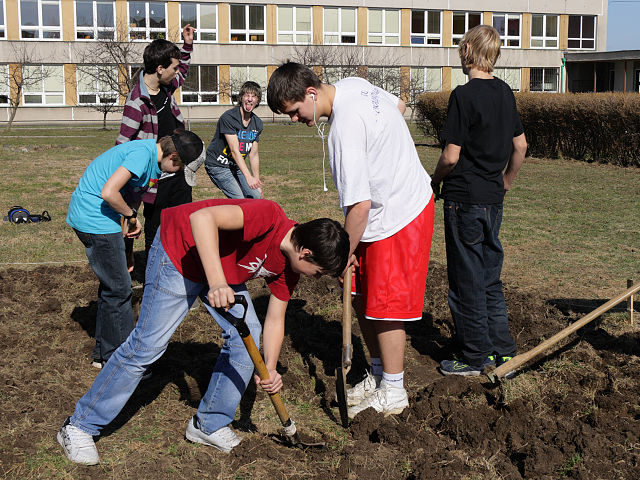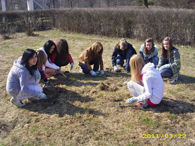Dívky z IX.A zkoumají vhodnou půdu