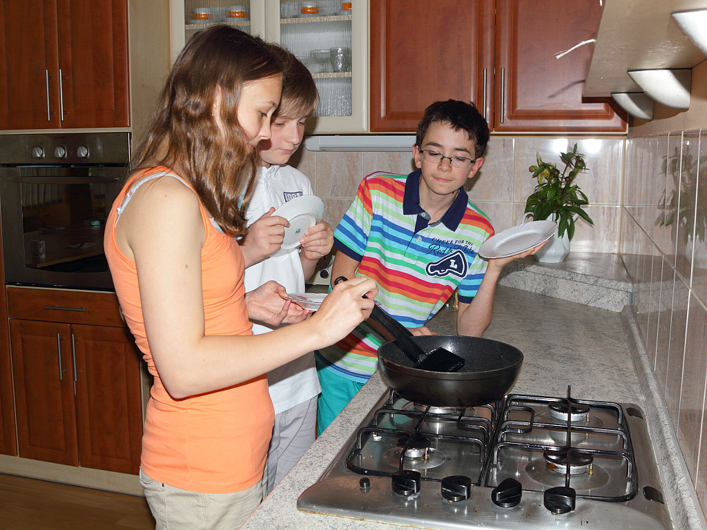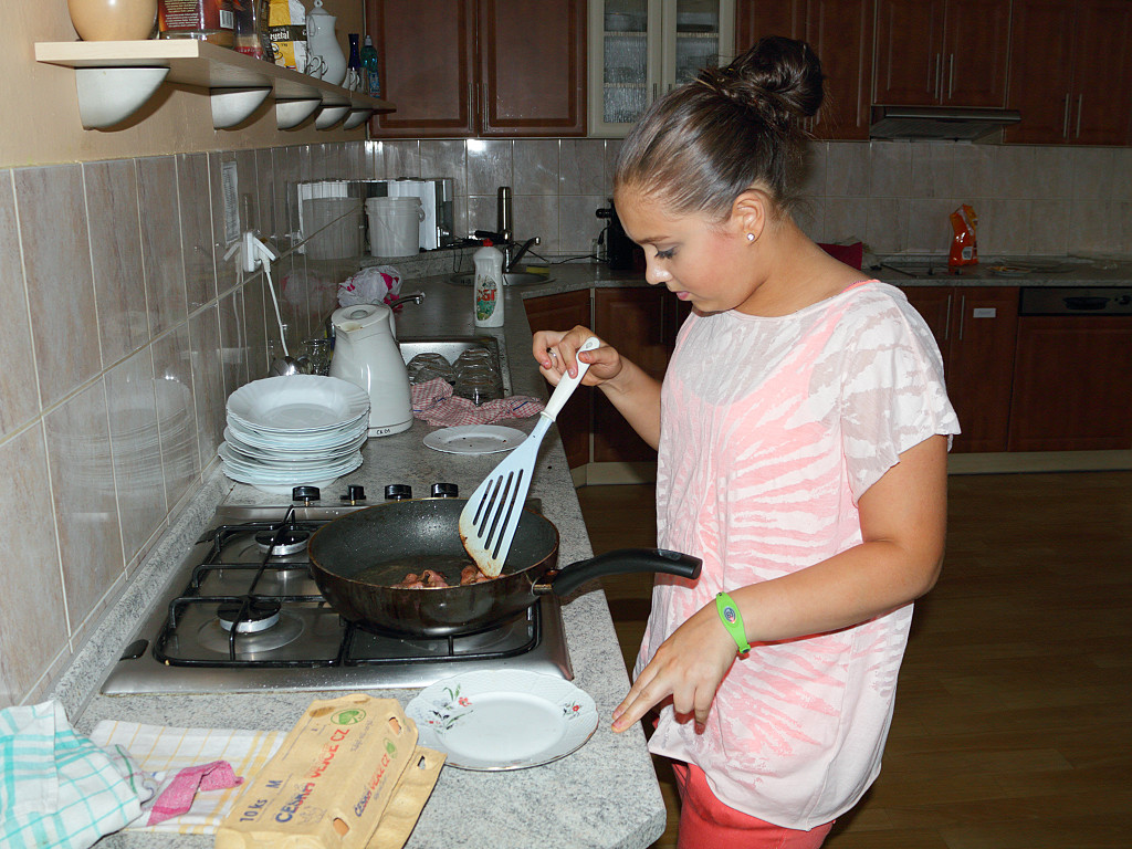 Majda zkouší kvalitu vlastnoručně usmaženého vejce.