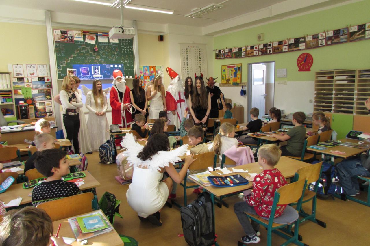 Naše škola se opět ponořila do kouzelné atmosféry adventu díky Mikulášské nadílce, kterou pro mladší spolužáky připravili žáci 9.A.