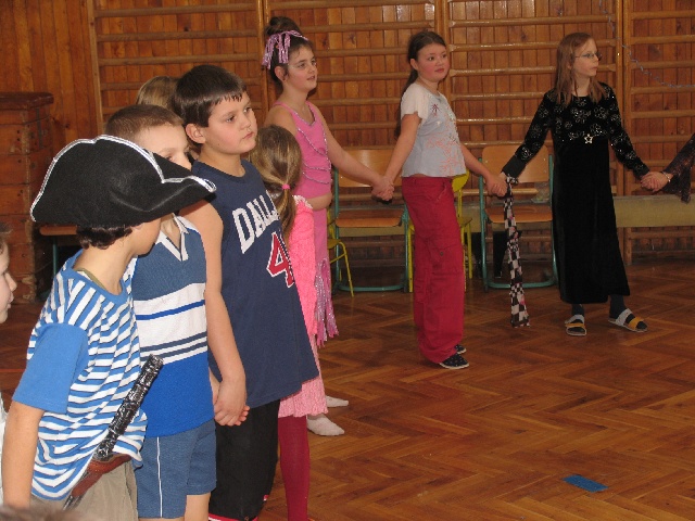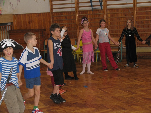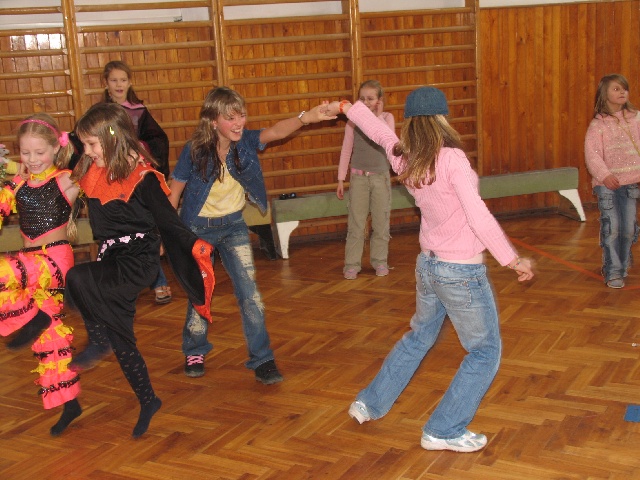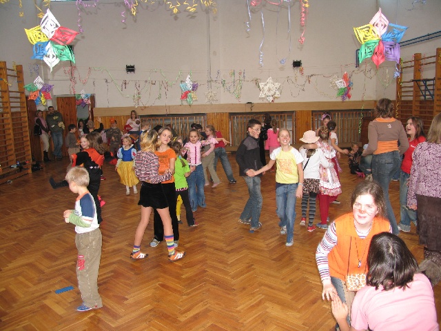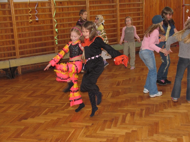 V době, kdy do naší školy přicházeli předškoláci se svými rodiči k zápisu do 1. ročníku, konala se v malé tělocvičně karnevalová diskotéka pro žáky 1. stupně naší školy.