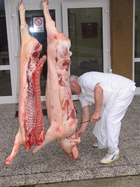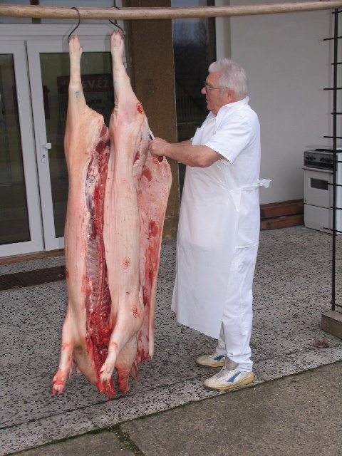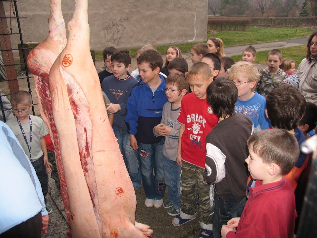 Pan Vladivoj Macák dětem ukázal, jak se maso upravuje a děti se dozvěděly, jak se odborně jednotlivé části vepře jmenují