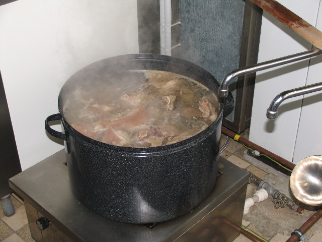 A vařilo se maso na výrobu zabíjačkových specialit...