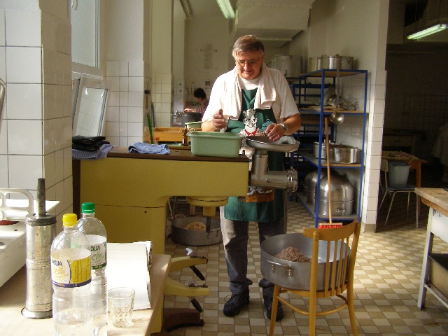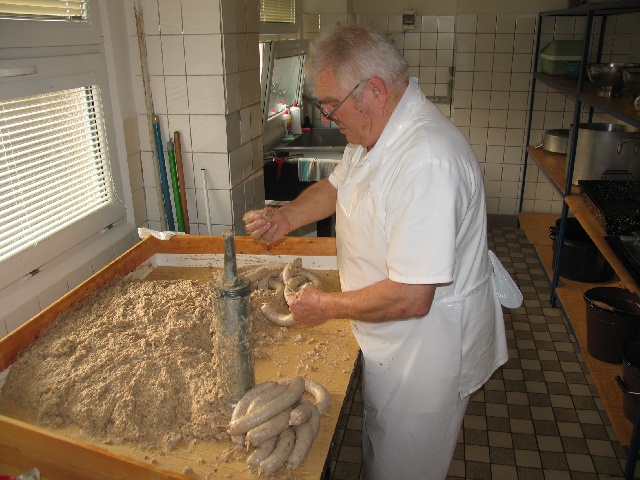 Pod rukama řezníka se rodí jedna jitrnice za druhou