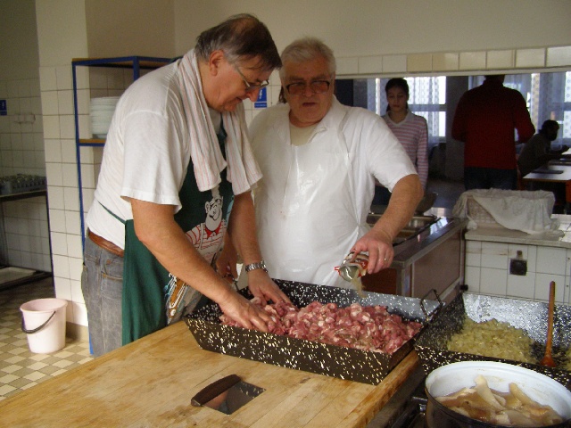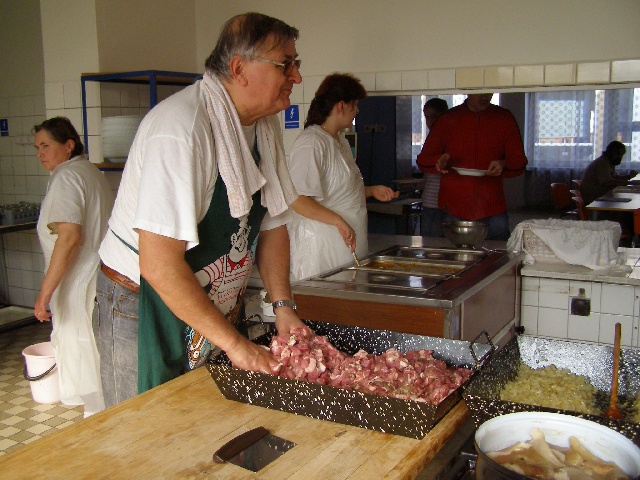 Na tradiční zabíjačkový guláš "SMAŽÁK" se musí maso dobře nakrájet, osmažit cibulku a všechno se to musí dělat s láskou...