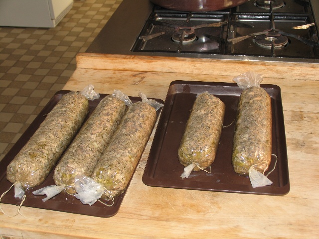 Dobře okořeněný a promíchaný prejt se potom plní do střívek se špejlemi