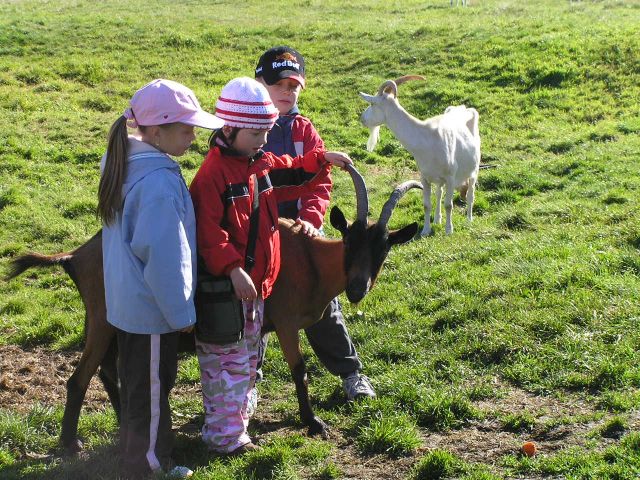 Čím a jak se krmí kozy, kde běhají přes den a kde spí, jak se dojí a co vše se z mléka vyrábí. Děti také ochutnaly kozí sýr, dováděly na pastvě mezi kozami a také jim rozdělily nějaké pamlsky, které kozám s sebou přivezly ( mrkev, chleba,atd).
