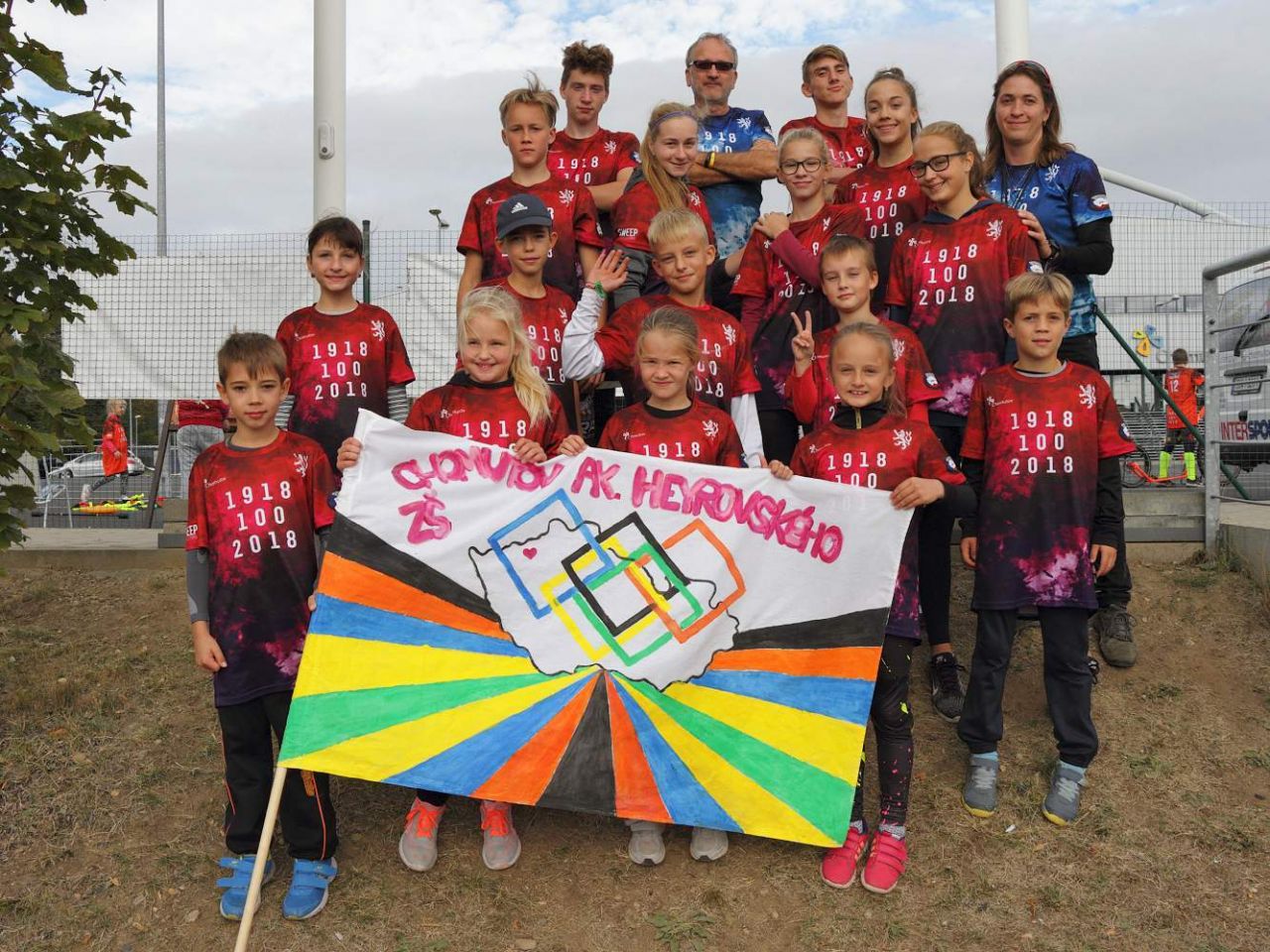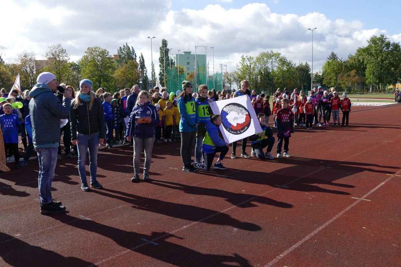 Rok 2018…Je nám ctí, že můžeme zažít to, co se jedinci stane málokdy. Naše republika slaví 100 let od svého vzniku, od vzniku Československa v roce 1918. Naše škola se rozhodla, že toto výročí oslaví v duchu prvorepublikových tradic trochu netradičně. Pro všechny základní školy Chomutova připravila „100lympiádu“, sportovní klání, kde si své síly mohla poměřit šestnáctičlenná družstva složená ze zástupců 2. -9.rořníku. Nejprve však akce začala představením týmů a krásných nápaditých vlajek, které si školy pro tuto akci vyrobily. Následovala přehlídka pohybových skladeb, které připomněly všesokolské slety. 100lympiáda svůj zahajovací ceremoniál podpořila i slavnostním slibem sportovců a rozhodčích, po kterém zazněla i 100lympijská hymna v podání její autorky paní učitelky Martiny Markové. Celé akci kromě pana ředitele školy Ak. Heyrovského Miloše Zelenky a náměstka města Chomutova pana Jana Mareše požehnala i olympionička Simona Kubová, rozená Baumrtová. 100lympijský oheň pak zažehnul další olympionik, bývalý žák naší školy, Jan Zabystřan.