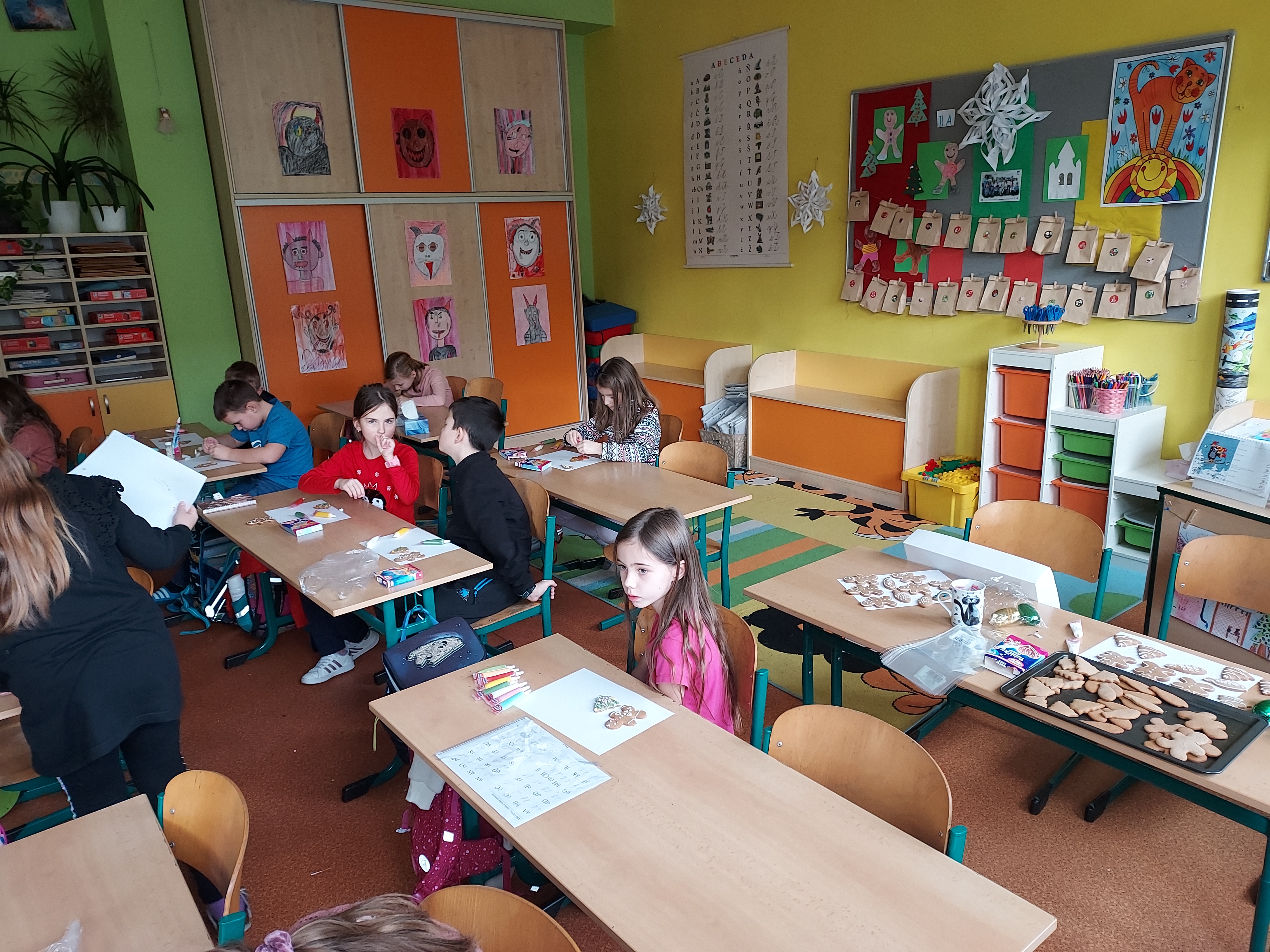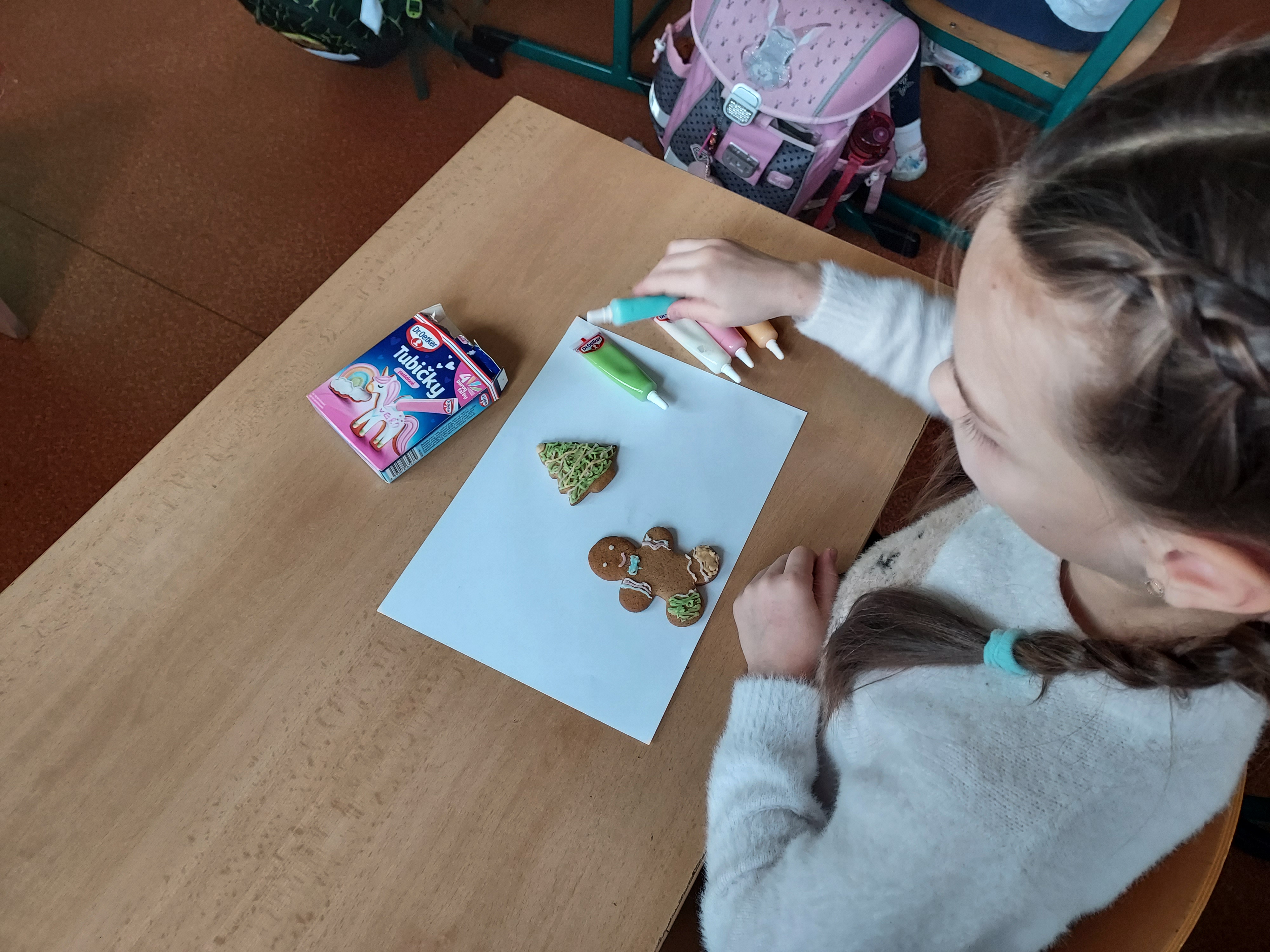 V uterý 12.12. nás čekalo na hodině tvořisti překvapení, které si pro nás připravila paní učitelka s paní asistentkou. Pustili jsme se do zdobení vánočních perníčků, které pro nás připravily. Byla to velká výzva, neboť nás moc zdobítka neposlouchala, přesto jsme se úkolu zhostili na výbornou a těšíme se až je budeme prodávat na vánočním jarmarku, který nás již brzy čeká.
