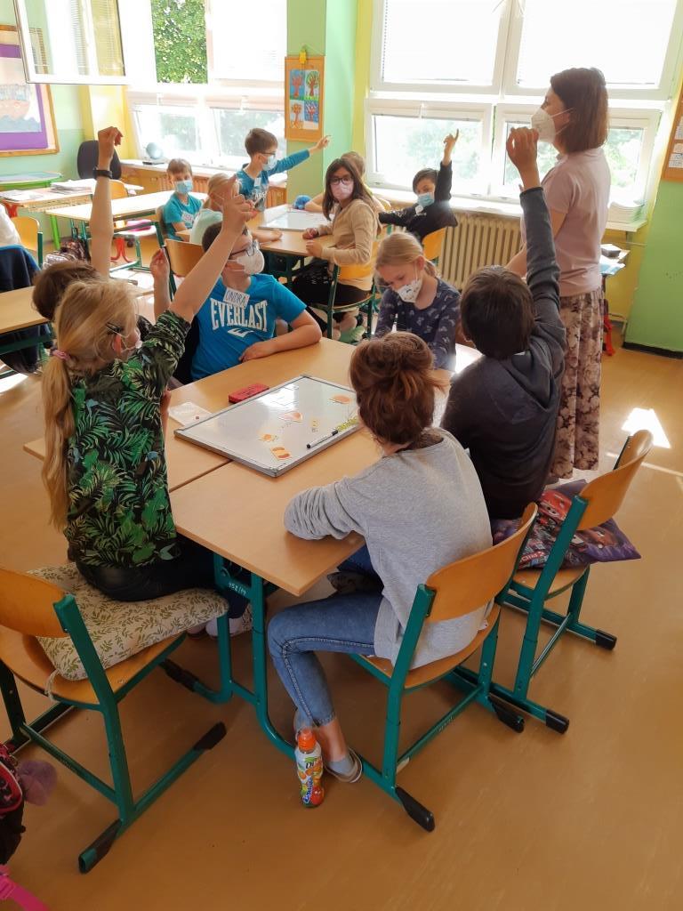 Zase spolu, společně, konečně ve škole! Testujeme se :),dáváme hlavy dohromady ve skupinách a vymýšlíme vzorečky pro obvod obrazců, učíme se názorně zlomky, pracujeme s novými aplikacemi na tabletech s pomocí IT technika, učíme se interaktivně o zdravém životním stylu v rámci akce "Putujeme za zdravím", naši oblíbení plyšáci s námi tráví Den dětí.Zbývájí necelé tři týdny do práznin. Čeká nás projekt o J.A.Komenském, třídní fotografování, Safari expres v zooparku, naše adoptovaná zvířata a závěrečná společná akce rodičů a dětí na Verosu. Tak do toho! Prázdniny už jsou za dveřmi! :)