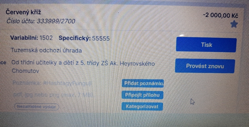 I tento rok jsme se rozhodli stát se adoptivními rodiči zvířete v zooparku a přispět finanční částkou na roční krmení. Vybrali jsme peníze, sešla se nám pěkná částka a když nastal čas se rozhodnout, na koho ze zvířátek se usměje štěstí, přišel konflikt na Ukrajině. Společně jsme přemýšleli, jak pomoci. Spontánně se mezi dětmi zrodil nápad, abychom částí peněz na adopci zvířete pomohli Ukrajině a zbytek dali na adopci. Každé z děti, samo za sebe, si zvolilo, jakou finanční částkou kam přispěje. A jak to dopadlo? Adoptovali jsme si mývala severního a dvěma tisíci korun přispěli Červenému kříži na vybavení dětských nemocnic na Ukrajině. Zkrátka, nejen děti zvířátkům, ale i děti dětem! :)
