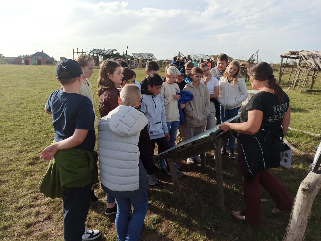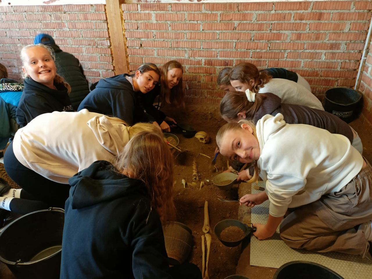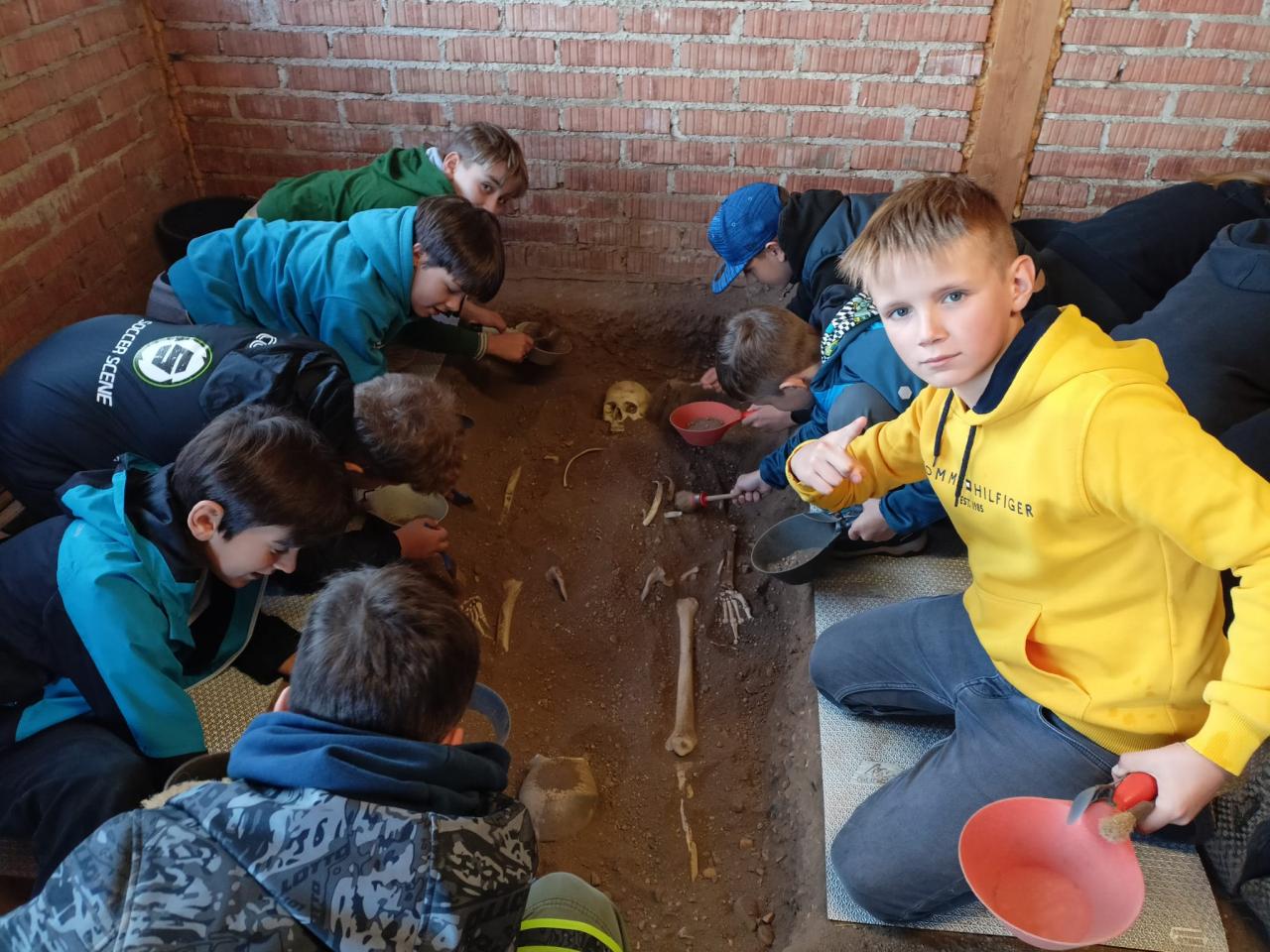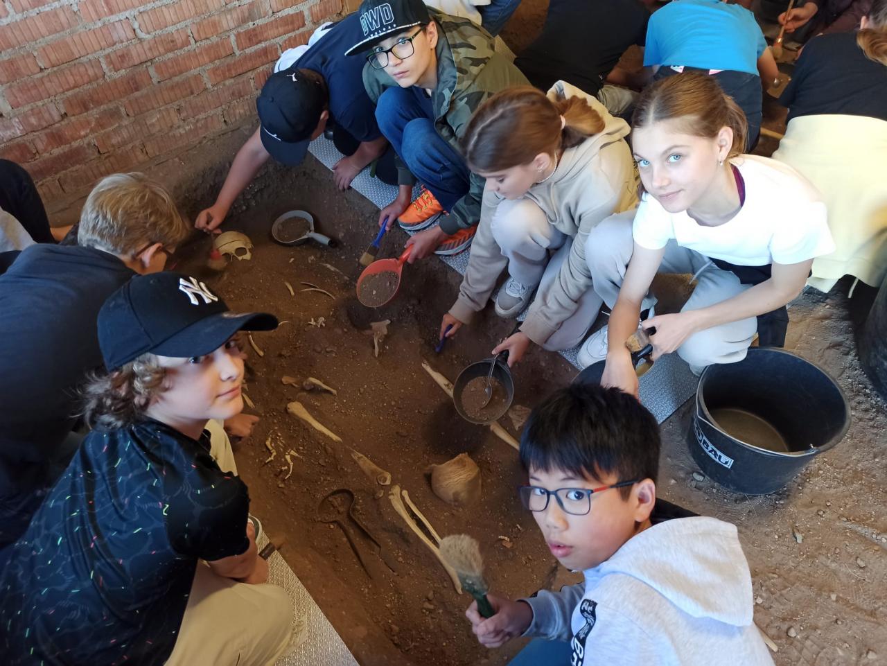 Vyzkoušeli si, jakým způsobem lidé v době kamenné vyráběli keramické nádoby, dozvěděli se jak žili, jak si stavěli domy, jak lovili. Vrcholem celého dne byla archeologická práce, kdy se žákům podařilo odhalit ostatky hned dvou lidí - jednoho bojovníka a jednoho farmáře. Zjistili, co jsou to milodary a proč se do hrobu dávali. Na závěr celého dne se občerstvili v místním bufetu a nakoupili si pěkné suvenýry.