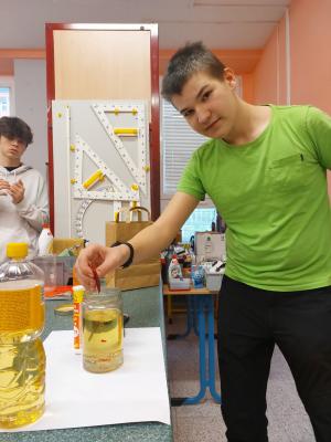 Děti si připravily fyzikální pokusy, které nám předvedly i s odborným výkladem. Každý pokus byl odměněn uznáním a potleskem.