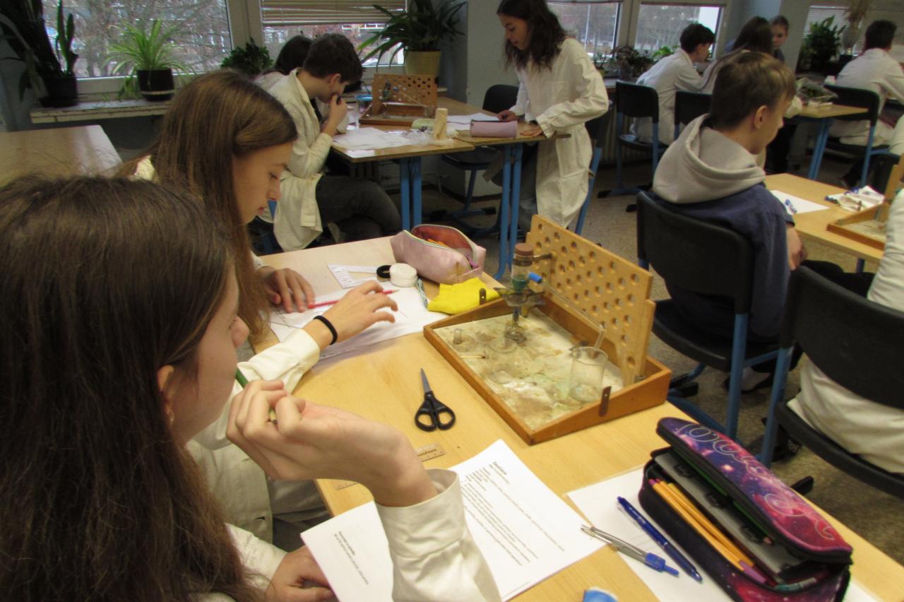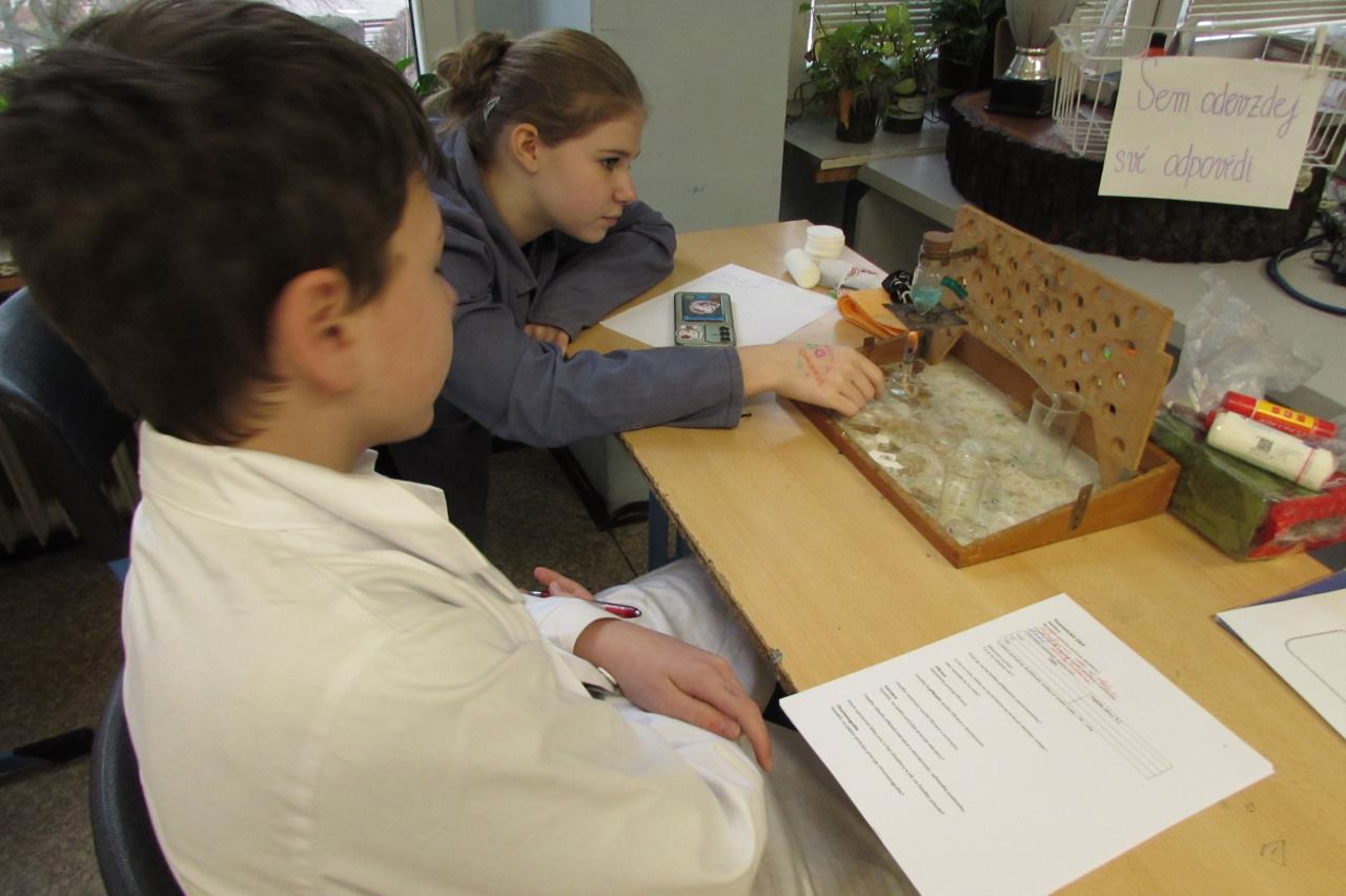 Během dne si žáci v praxi vyzkoušeli techniky, které jsou v chemii základem dodnes, i když už k nim nepoužíváme křivule a čarodějné formule: