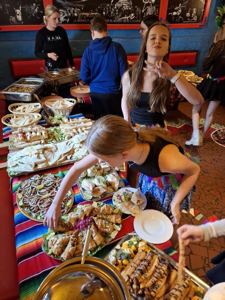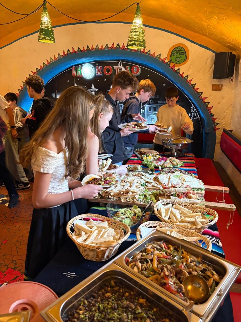 Za své úsilí byli žáci odměněni bohatým rautem. Vrcholem celého dne byla ochutnávka tradiční mexické kuchyně, kterou pro ně připravili zaměstnanci restaurace. Nachos, churros, burrita, tortilly i různé druhy salsy přinesly nejen chuťový zážitek, ale také autentickou atmosféru Mexika.