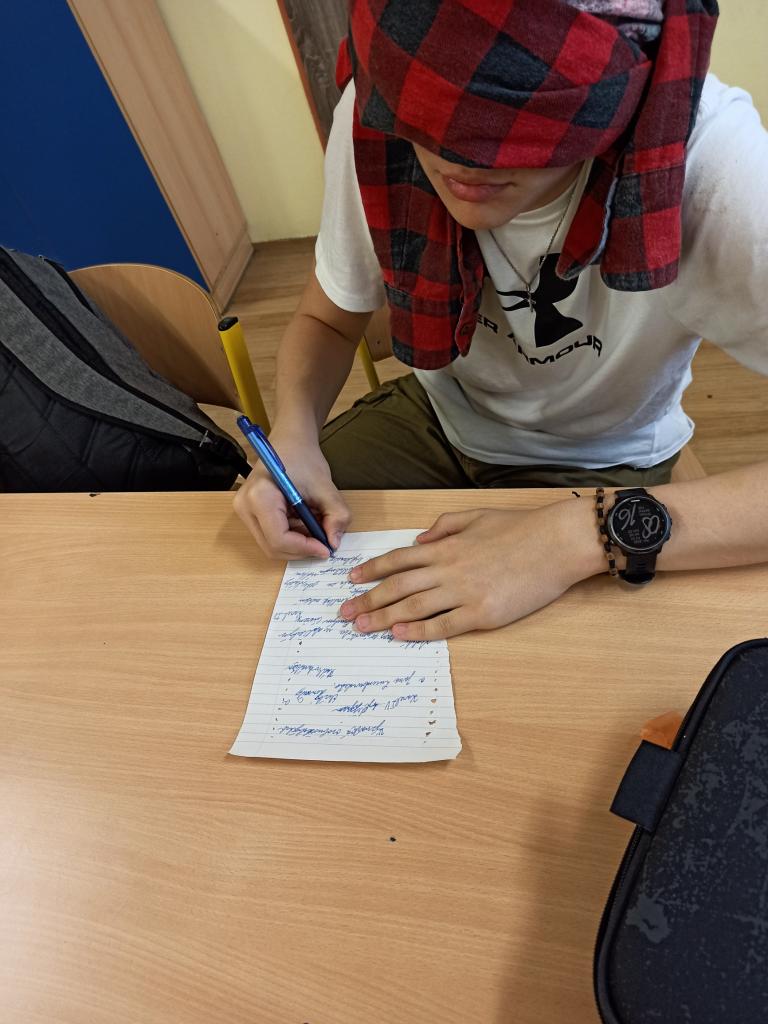 I hodiny českého jazyka se dají při příležitosti aprílu ozvláštnit, třeba diktátem "poslepu". Žáci osmých tříd se úkolu zhostili se značnou vervou a vyzkoušeli si, jak moc se na náš zrak při běžných činnostech spoléháme.