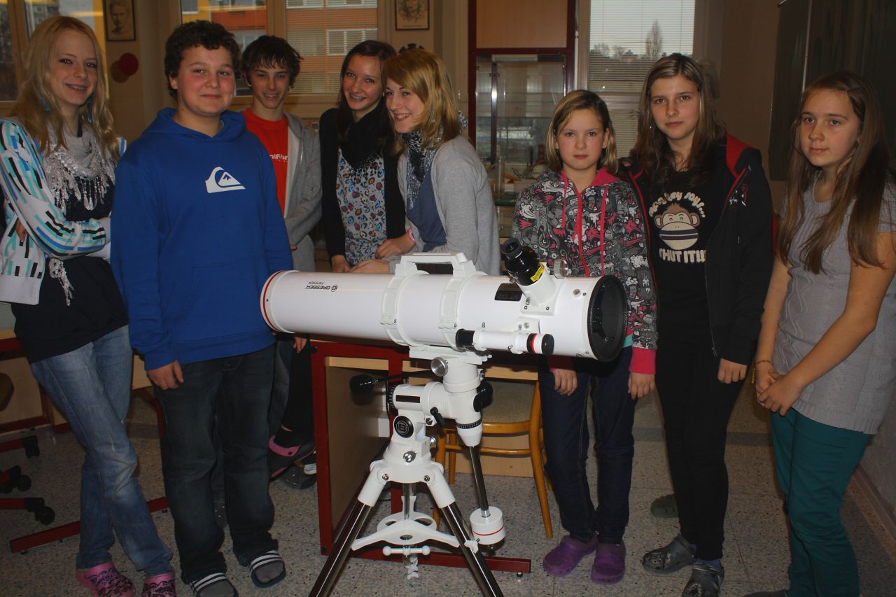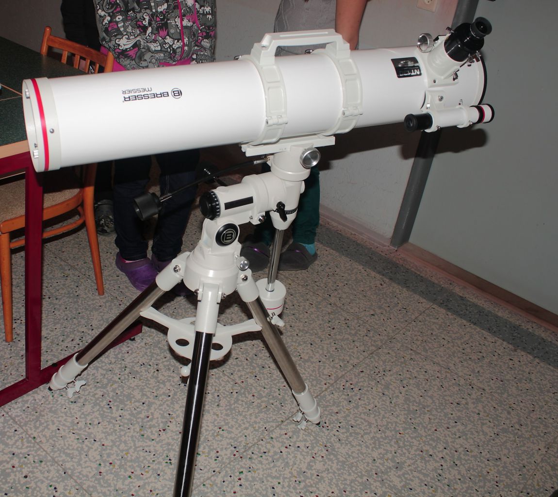 Pro pozorování noční oblohy byl zakoupen zrcadlový dalekohled konstrukce Newton na paralaktické montáži. Průměr zrcadla 130 mm.