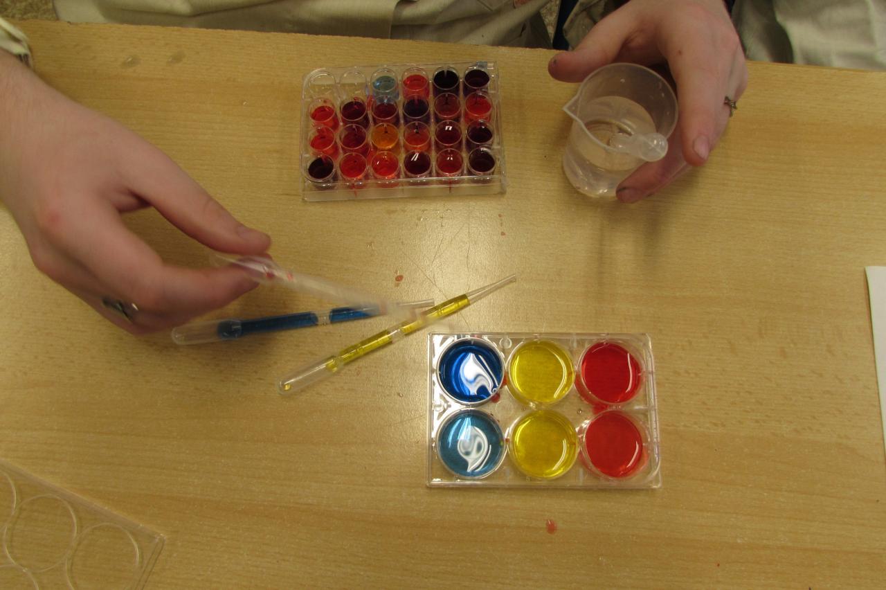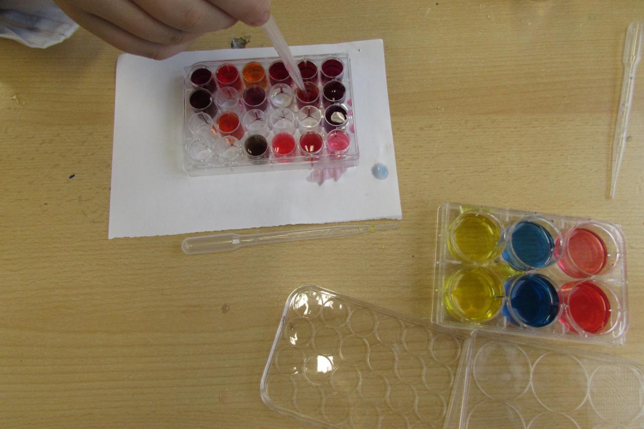 Žáci dostali za úkol mísit tyto základní pigmenty v různých poměrech a sledovat, co se stane. Pod jejich rukama začaly vznikat první sekundární barvy – oranžová, zelená a fialová – ale tím to zdaleka nekončilo.