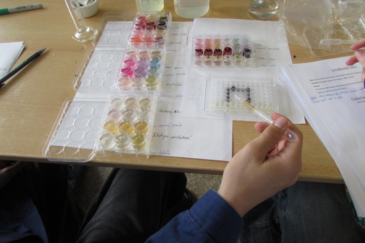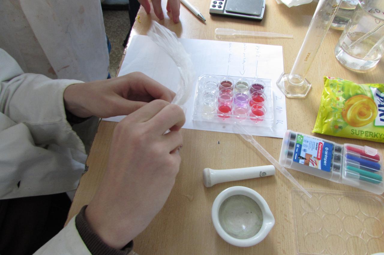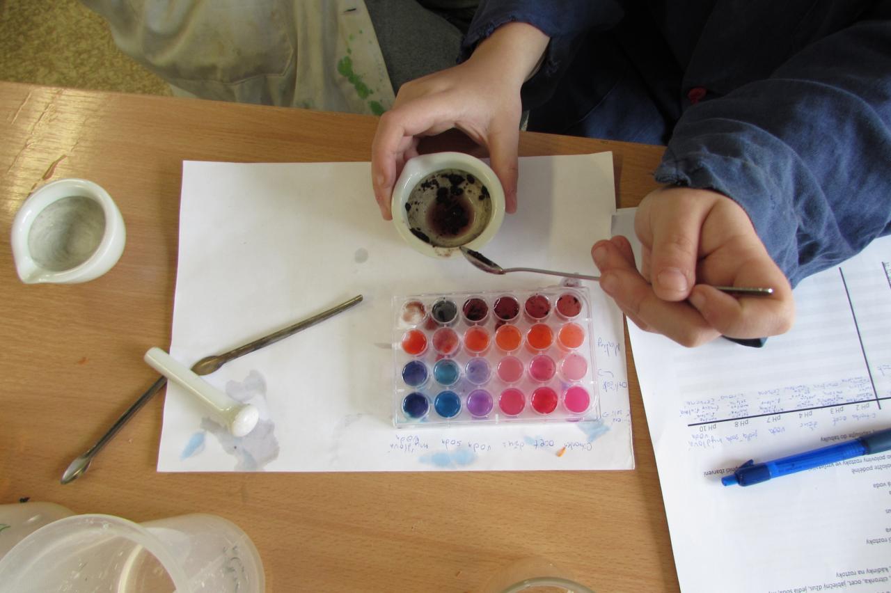 Celodenní laboratorní práce s názvem Barva kouzel proměnila naši chemickou učebnu v pestrobarevnou dílnu. Žáci se ponořili do světa acidobazických indikátorů – látek, které nám svou barvou prozradí, zda je roztok kyselý, nebo zásaditý.