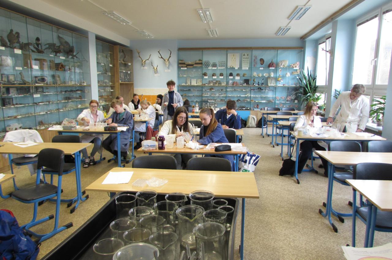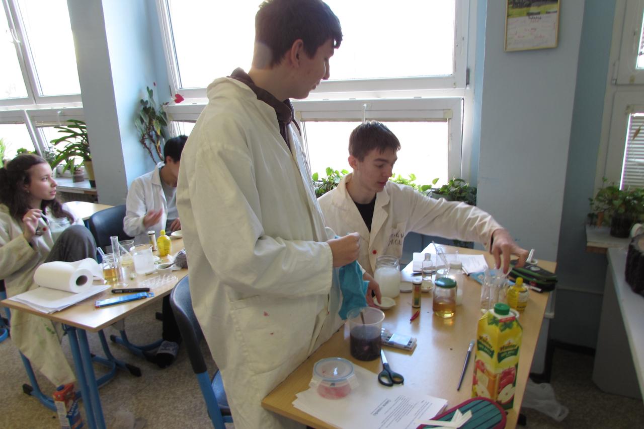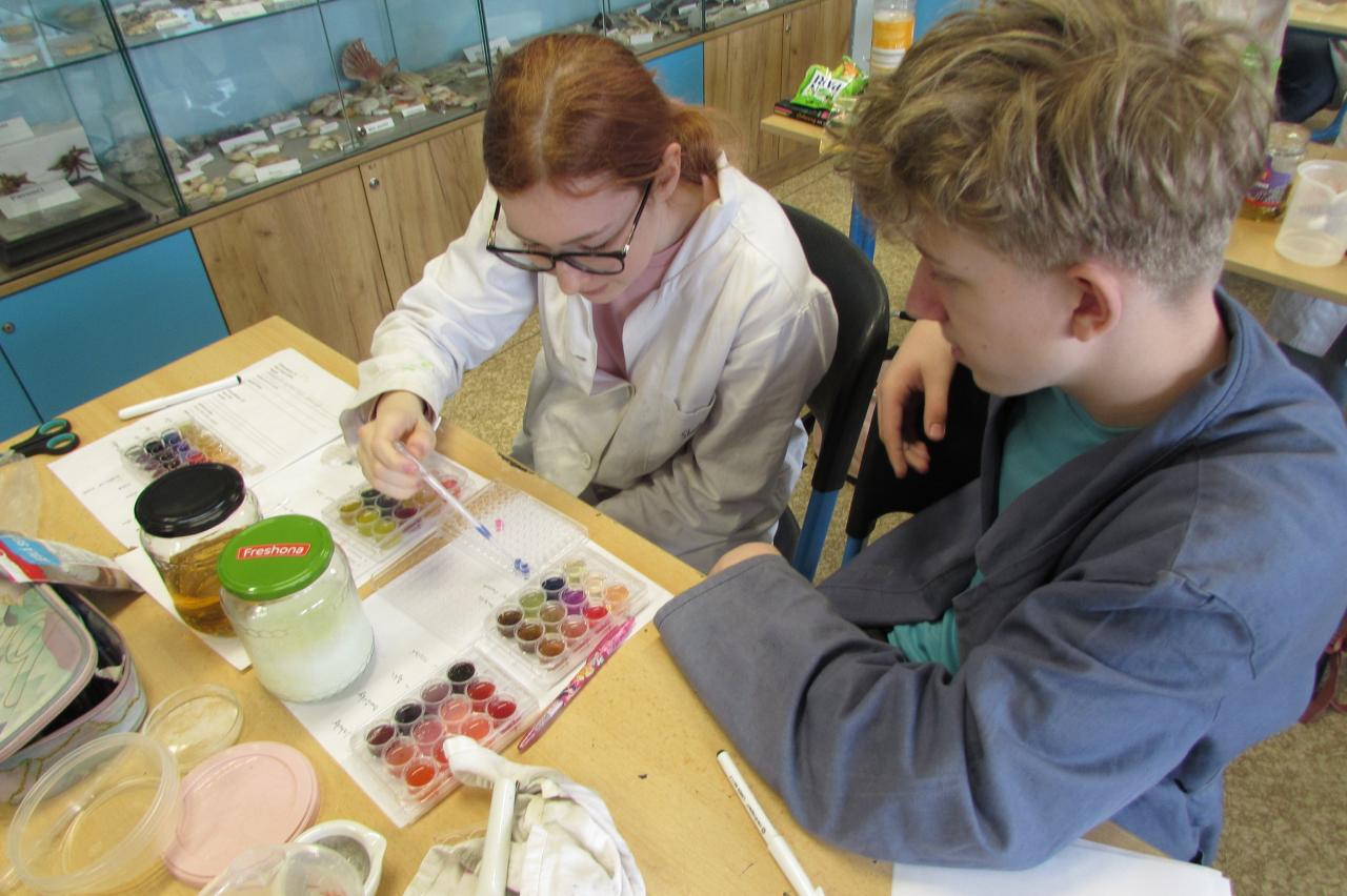 Celodenní laboratorní práce s názvem Barva kouzel proměnila naši chemickou učebnu v pestrobarevnou dílnu. Žáci se ponořili do světa acidobazických indikátorů – látek, které nám svou barvou prozradí, zda je roztok kyselý, nebo zásaditý.