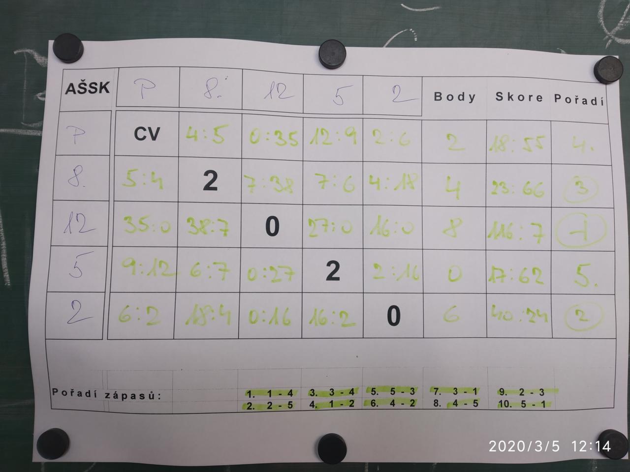 V prvním utkání naprosto přesvědčivě porazily dívky z Písečné 27:0. Jejich skvělý výkon pokračoval i v následujícím utkání, které bylo nejtěžší. I tak porazily domácí dívky ze Zahradní 16:0. Největšího rozdílu ve skóre dosáhly proti dívkám z Perštejna a ukazatel skóre se zastavil na skóre 35:0. V posledním zápase si poradily s dívkami ze Školní. Tentokrát byl výsledek 38:7. Dívky si odnesly nejen zlaté medaile, ale i postup do kola krajského, které se koná 19. března. Gratulujeme a děkujeme za reprezentaci.