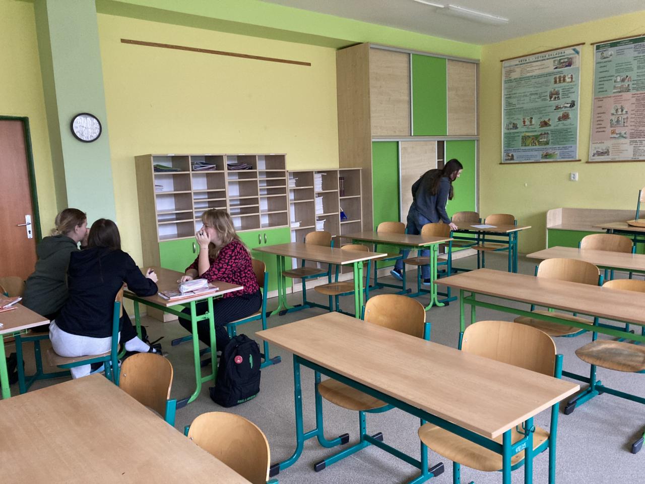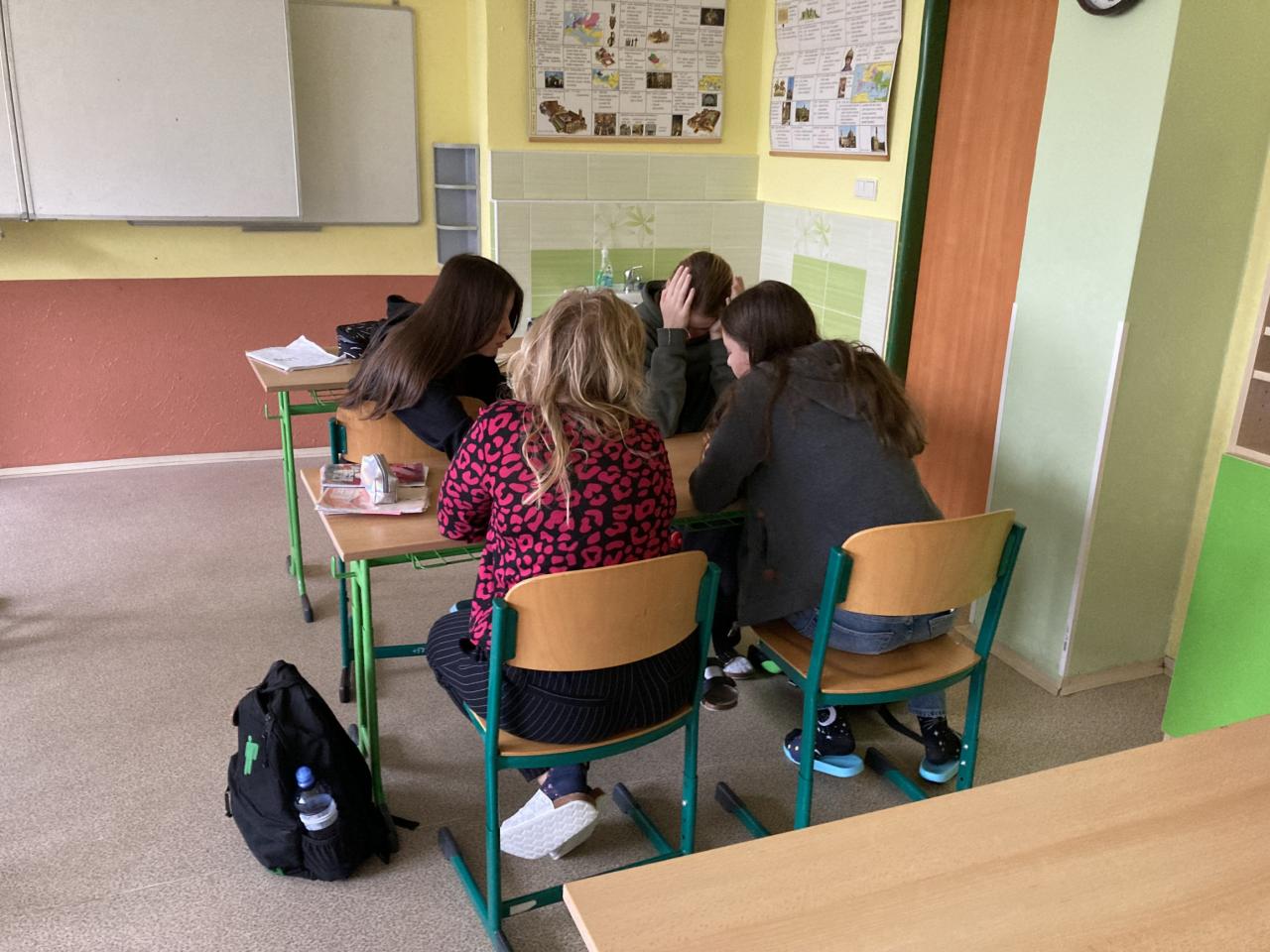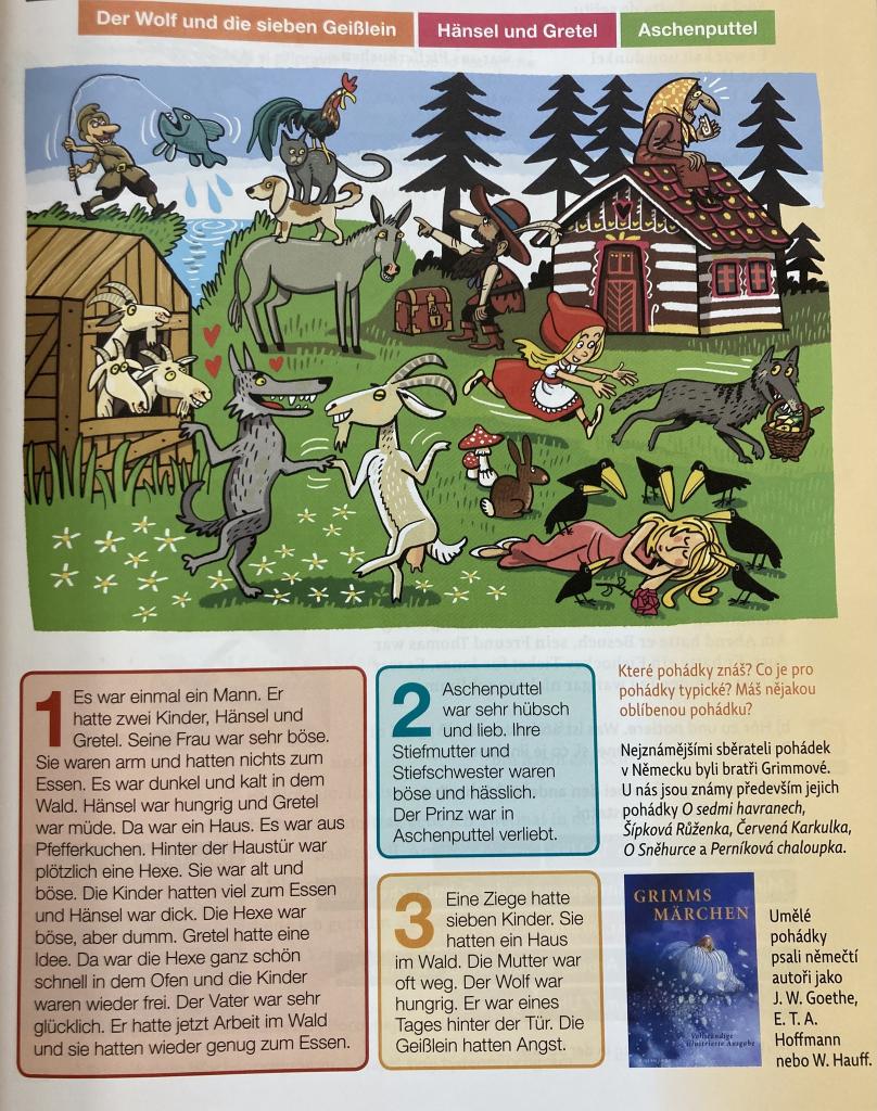 Běhací diktát v němčině? Proč ne! Deváťáci ho zvládli včetně překladu. Šlo o dvě jednoduché pohádky bratří Grimmů, které byly v minulém čase. Aschenputtel und der Wolf und die sieben Gleißlein.
