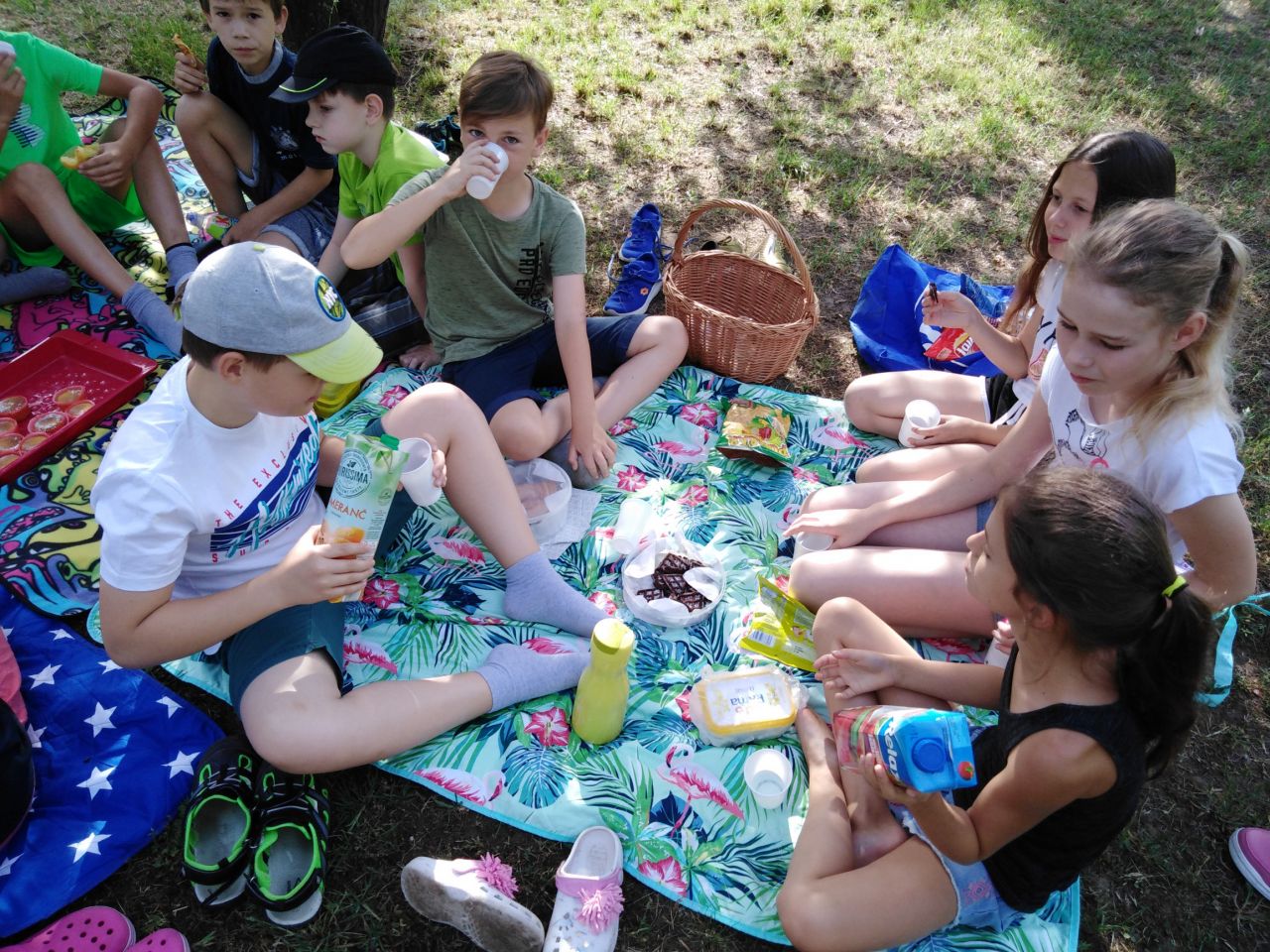 V pátek si děti ze 4.A užily poslední hodinu angličtiny v tomto školním roce, uspořádaly si piknik.V pohodové atmosféře na dece jsme si zopakovali mnohá slovíčka a zahráli tichou poštu. Dik patří všem maminkám, ktere děti vybavily dobrotami.