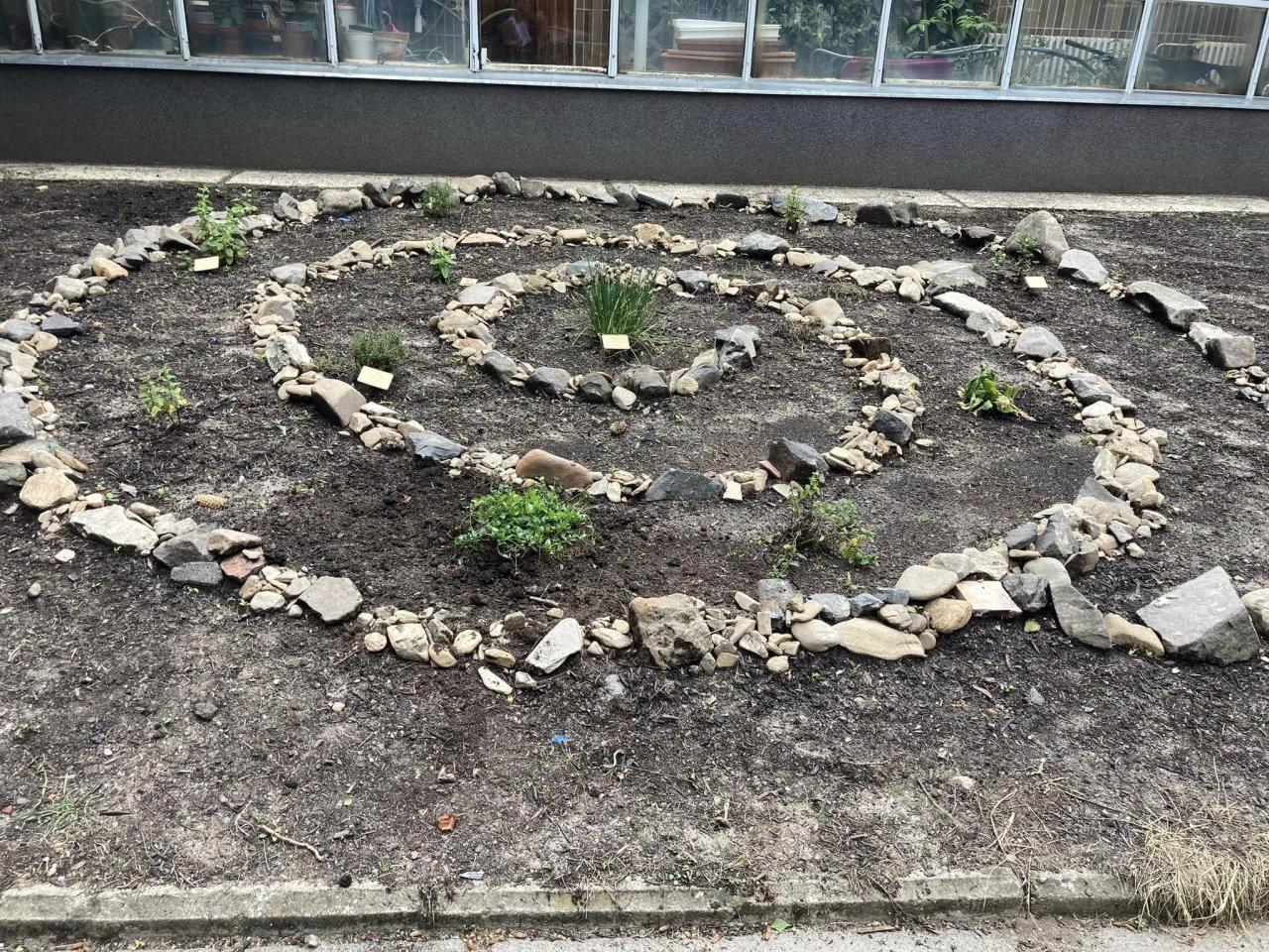 Před skleníkem naší školy nyní najdete nádhernou bylinkovou spirálu a trvalkový záhonek, které byly pečlivě připraveny žáky 8. a 9. ročníků.