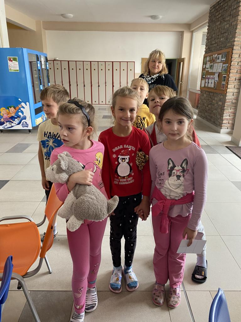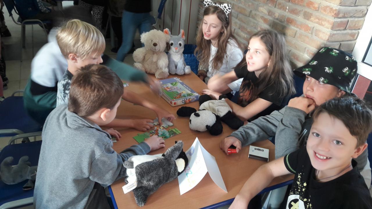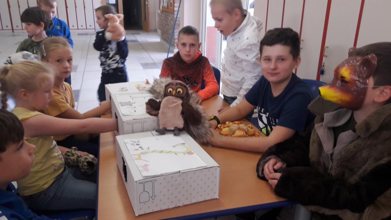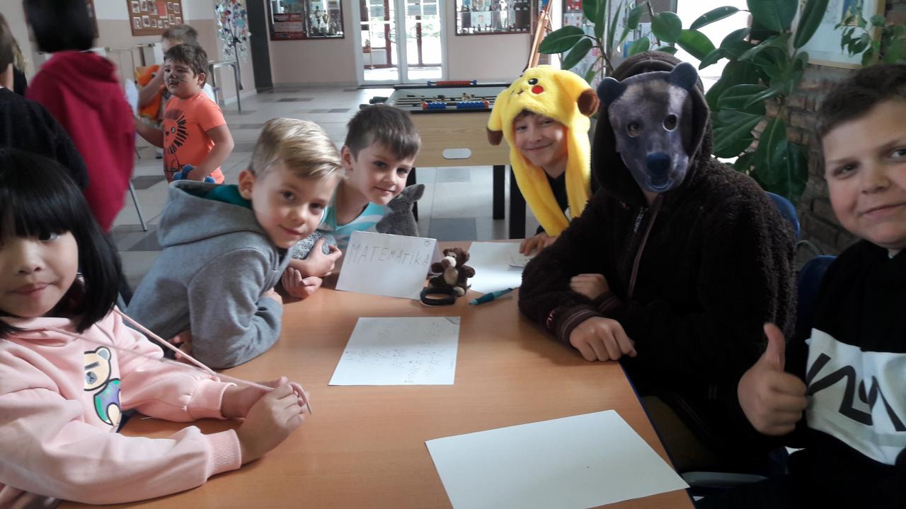 Letos jsme se rozhodli zorganizovat Den zvířat i pro mladší spolužáky. Žáci 1. - 4.ročníků přišli v oblečení s motivy zvířat a měli s sebou plyšáky. Zapojili se do plnění úkolů z každého vyučovacího předmětu. V ČJ hledali skryté zvíře ve větě. V M vypočítali hodnotu jednoho ze zvířátek dědy Lesoně. V HV vzpomínali na zvířátka ukrytá v písničkách. Svými smysly zjišťovali, jaká přírodnina je ukrytá v krabicích. A při Tvořivosti skládali puzzle se zvířecím motivem. Nejlepší trojice z každé třídy byla odměněna... čím? No přeci gumovými bonbony ve tvaru zvířátka.
