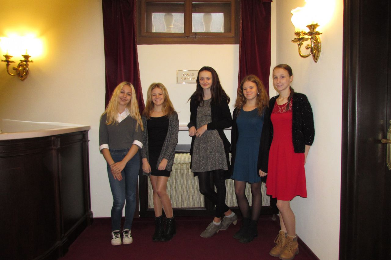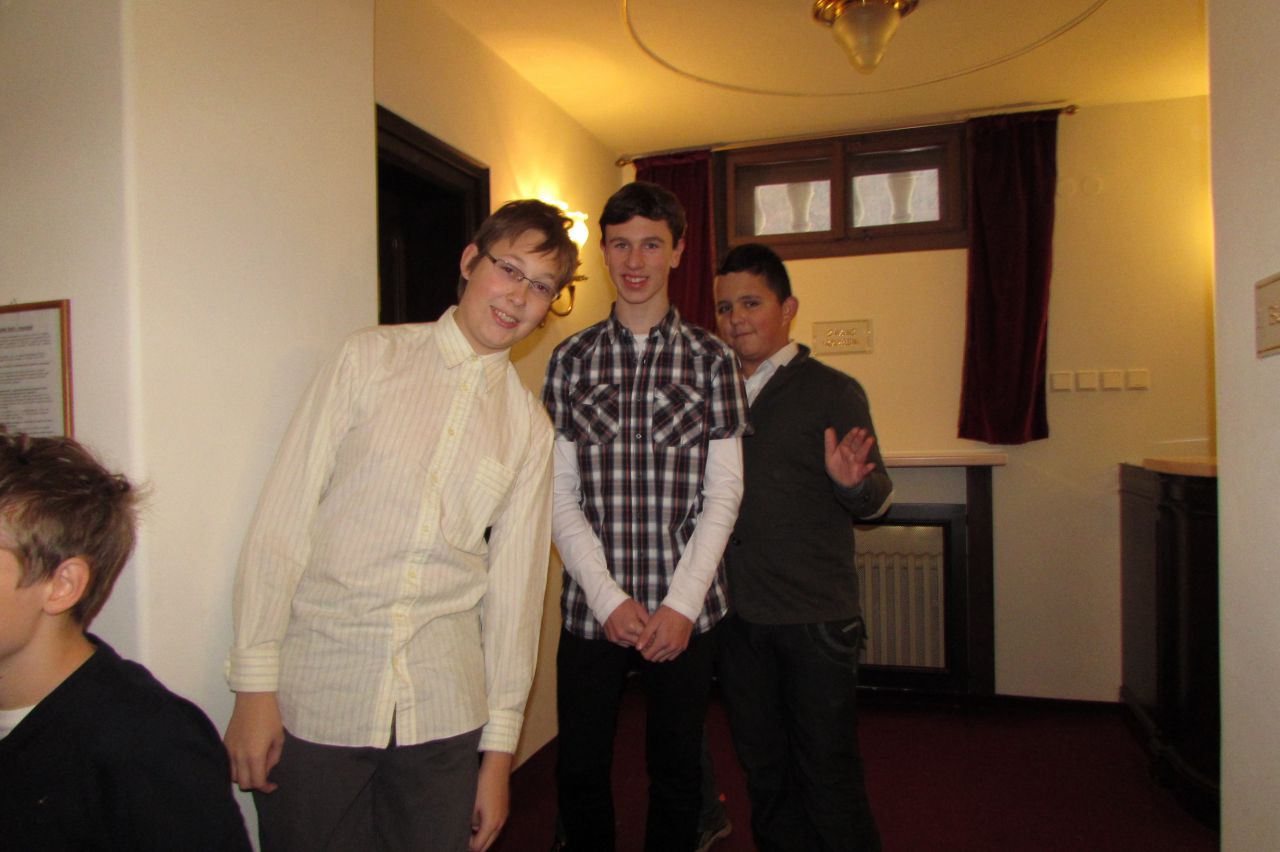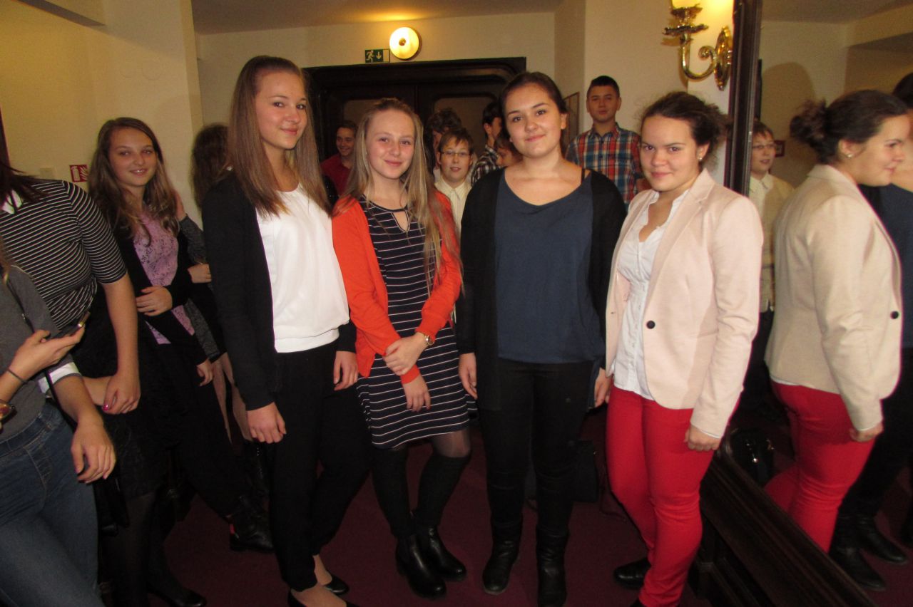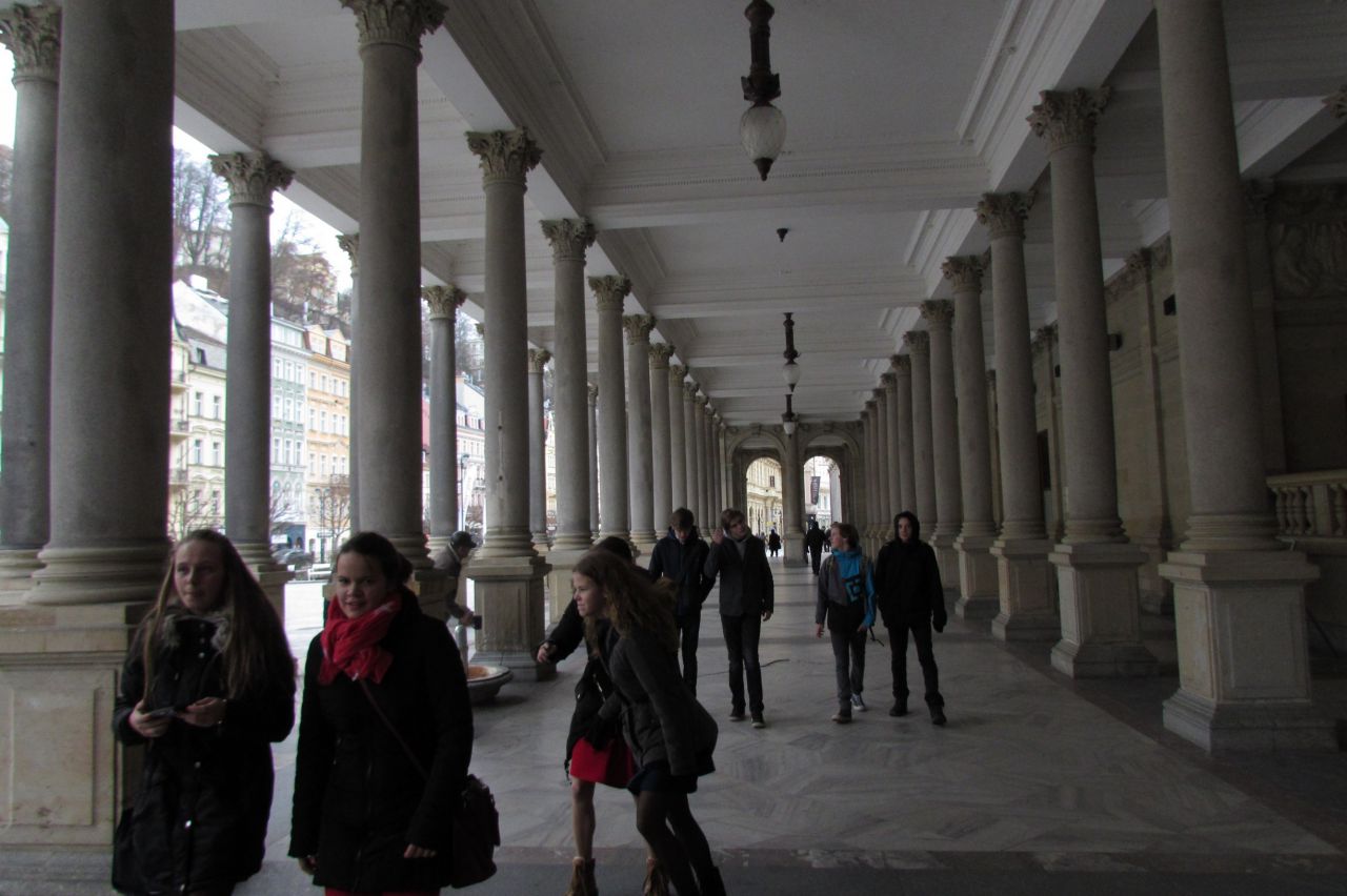 25.11.2016 se konala generální zkouška muzikálu Adéla ještě nevečeřela, na kterou jsme se s 8.b vypravili. Sešli jsme se ráno, všichni krásně oblečení, na vlakovém nádraží. Cesta zimní krajinou je sice smutnější, ale údolí řeky Ohře je pěkné pořád. Vlakem prostě cestujeme rádi. Linka MHD v Karlových Varech jede okružní trasou, ze které je krásný výhled na kolonádu. Budova divadla je krásná. O představení se to bohužel nedalo říci. Zklamání bylo velké. Procházka po kolonádě a společný oběd nám to ale vynahradily. Výlet končil zase vlakem - úspěch zaručen.