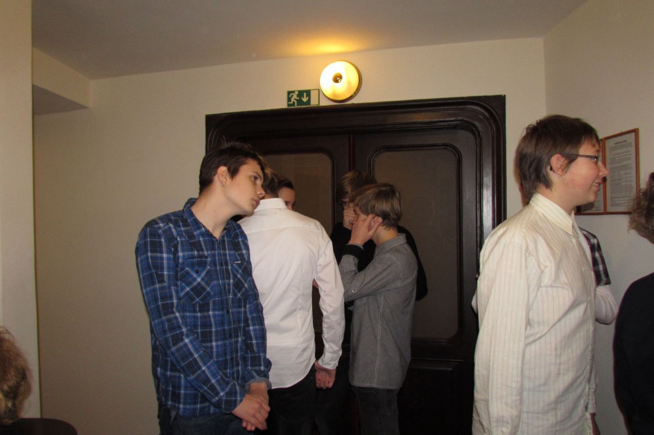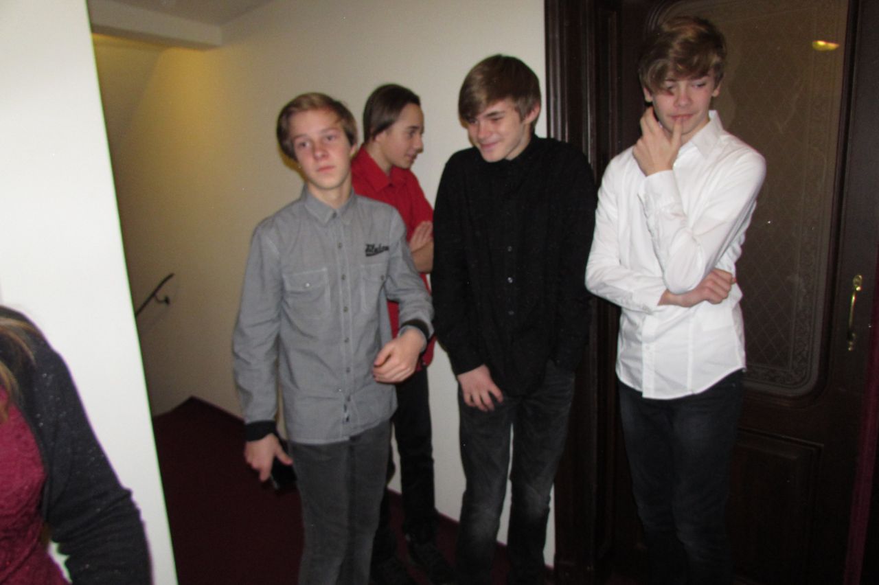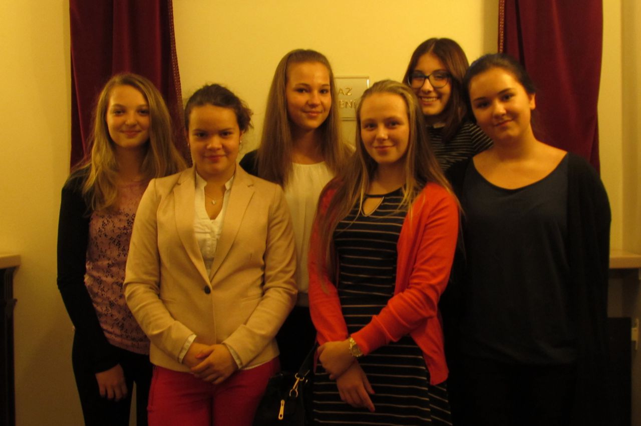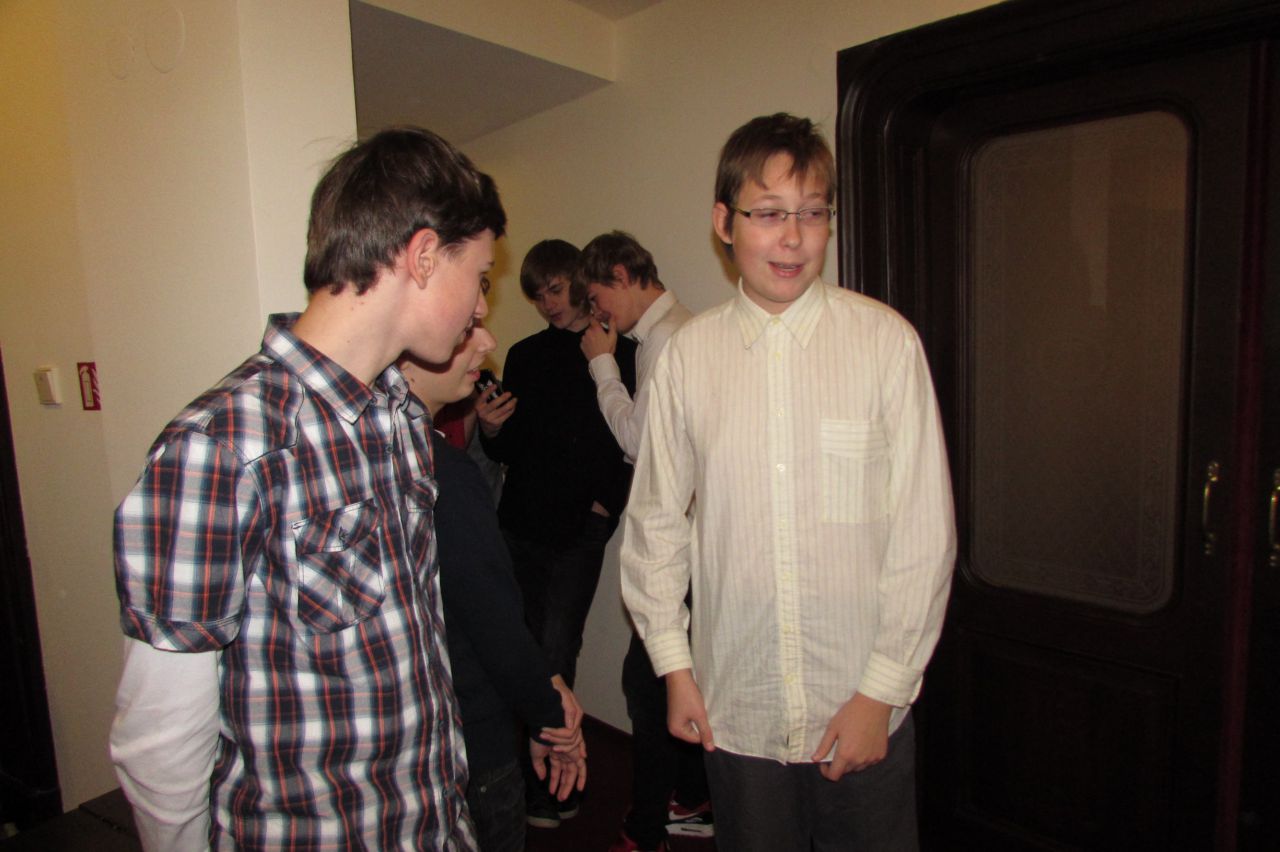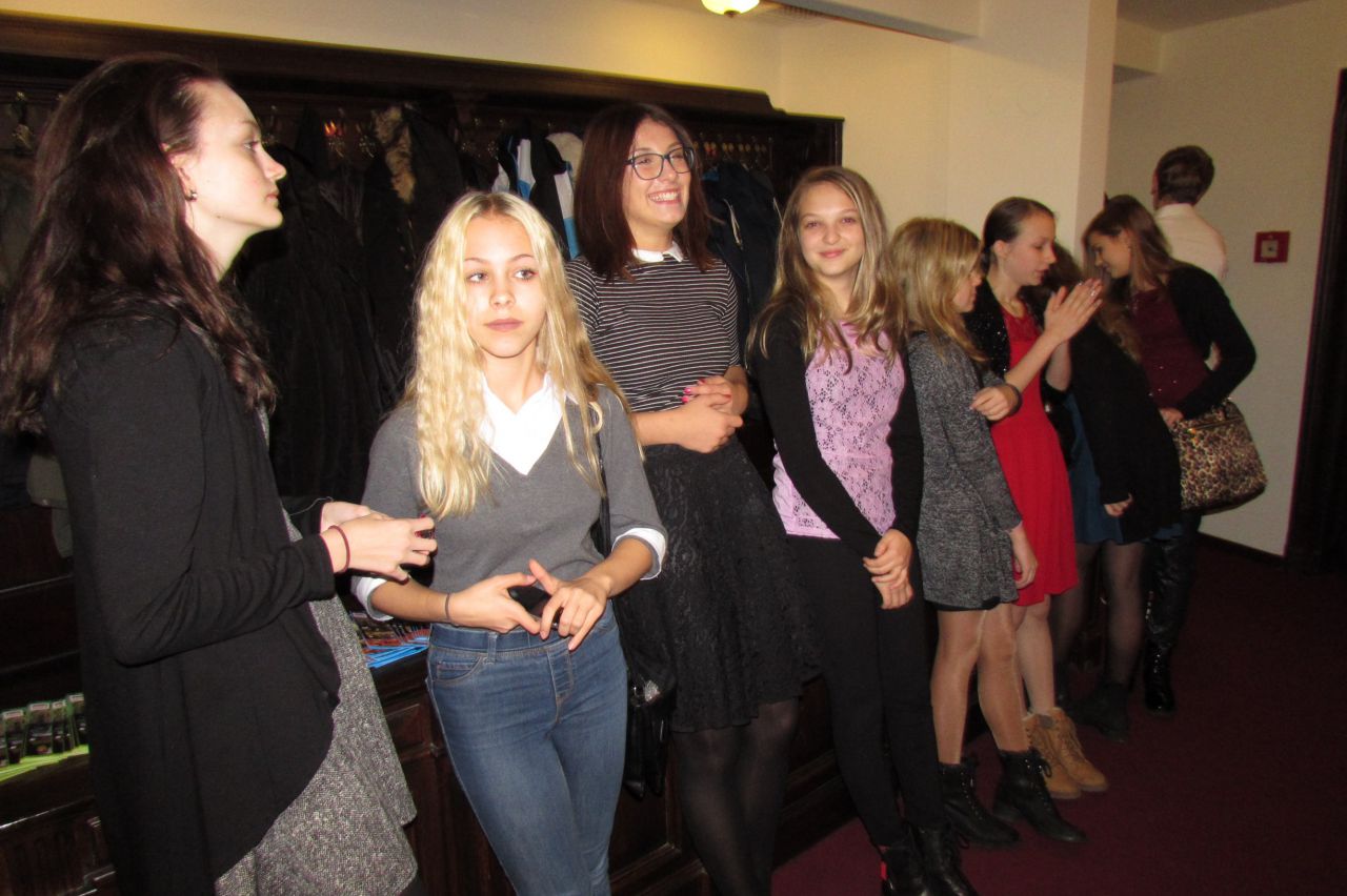 25.11.2016 se konala generální zkouška muzikálu Adéla ještě nevečeřela, na kterou jsme se s 8.b vypravili. Sešli jsme se ráno, všichni krásně oblečení, na vlakovém nádraží. Cesta zimní krajinou je sice smutnější, ale údolí řeky Ohře je pěkné pořád. Vlakem prostě cestujeme rádi. Linka MHD v Karlových Varech jede okružní trasou, ze které je krásný výhled na kolonádu. Budova divadla je krásná. O představení se to bohužel nedalo říci. Zklamání bylo velké. Procházka po kolonádě a společný oběd nám to ale vynahradily. Výlet končil zase vlakem - úspěch zaručen.