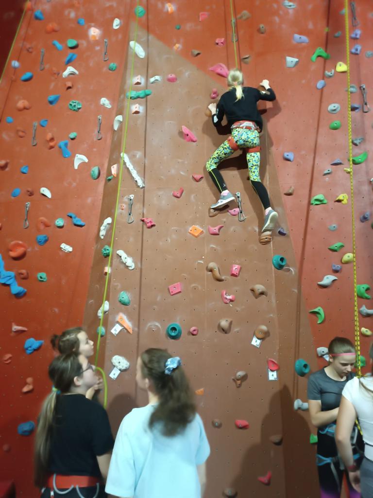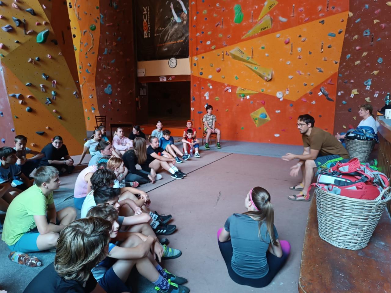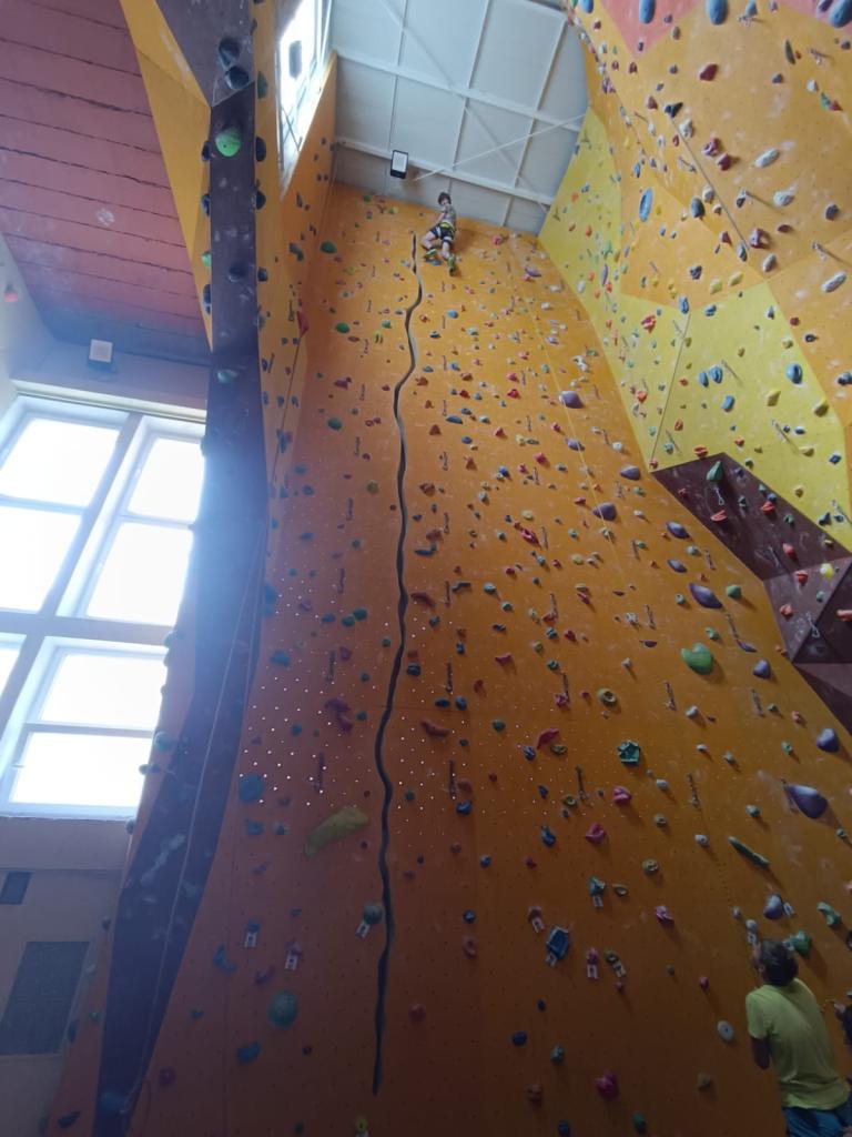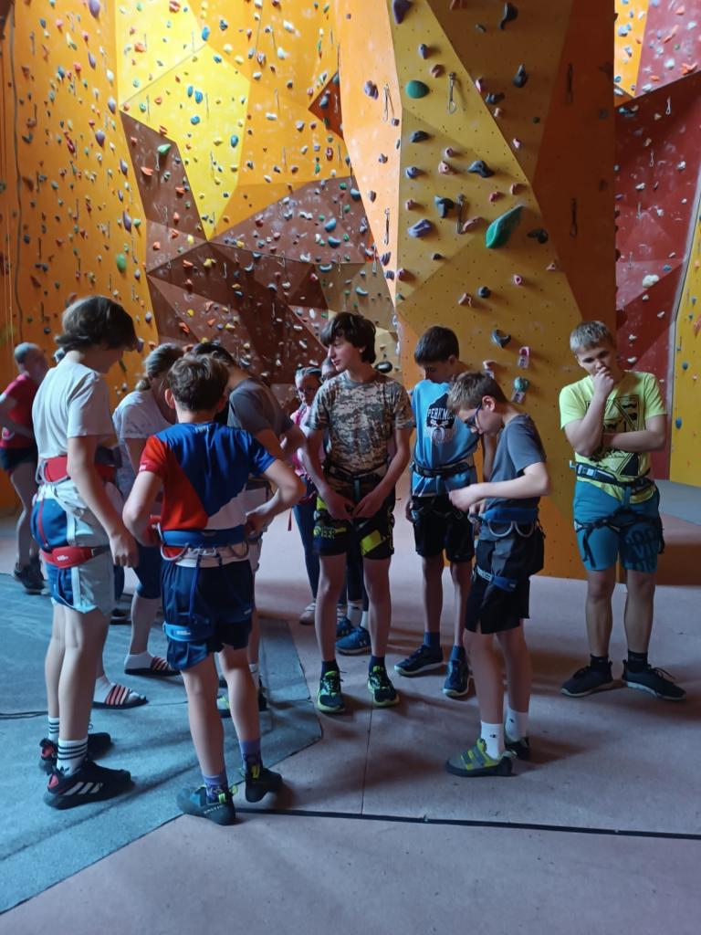 Po příchodu do arény jsme se seznámili s vybavením a byli jsme poučení o základech horolezectví a bezpečného chování nejen na stěně, ale i v přírodě. Přestože někteří ze žáků měli z počátku strach z výšek, s podporou svých spolužáků, zkušeného instruktora a babiččina hecování, se vskutku překonali.