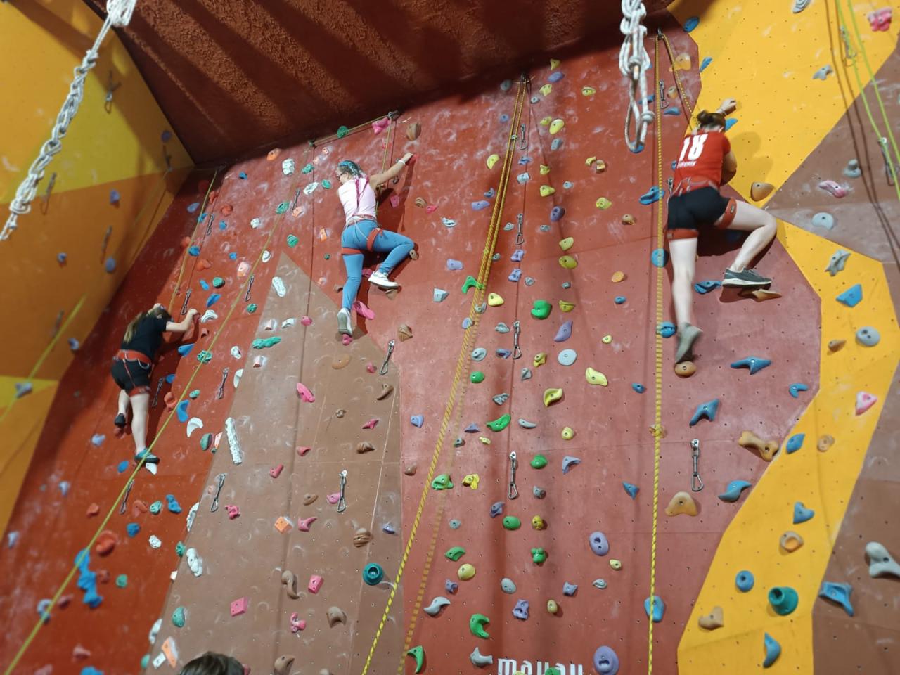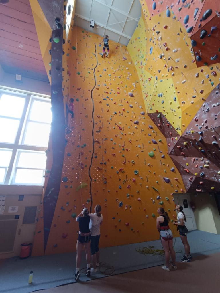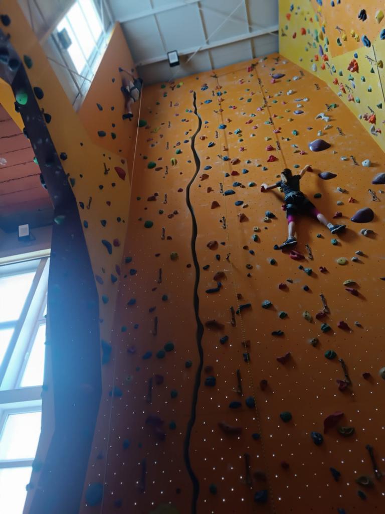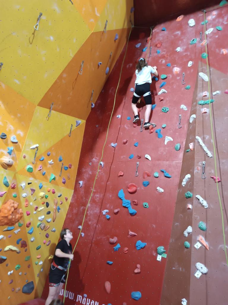 Po příchodu do arény jsme se seznámili s vybavením a byli jsme poučení o základech horolezectví a bezpečného chování nejen na stěně, ale i v přírodě. Přestože někteří ze žáků měli z počátku strach z výšek, s podporou svých spolužáků, zkušeného instruktora a babiččina hecování, se vskutku překonali.
