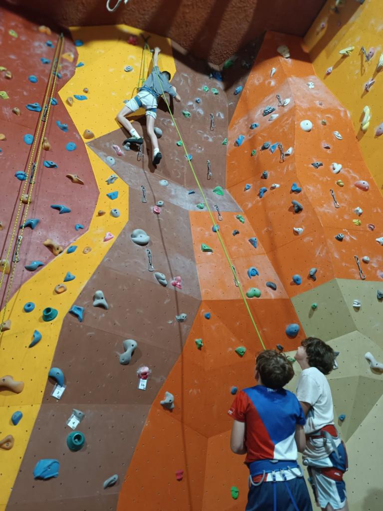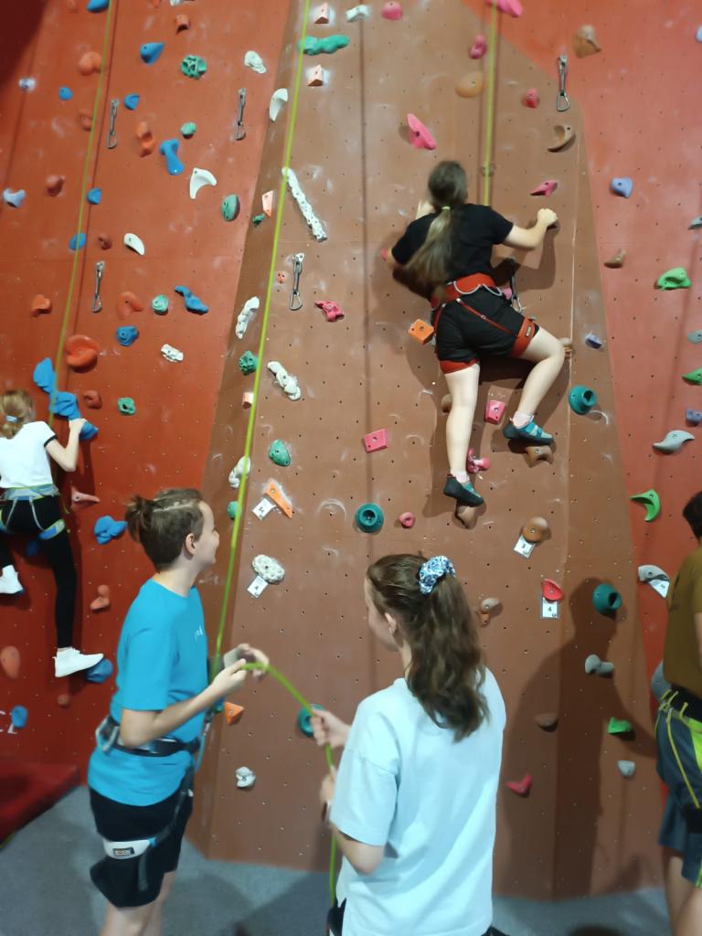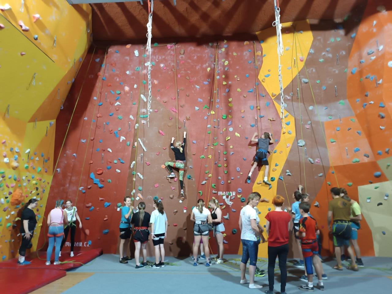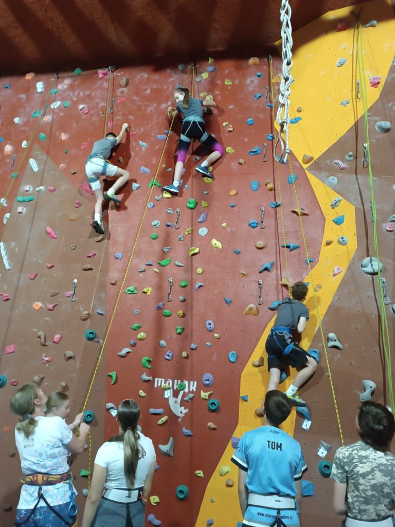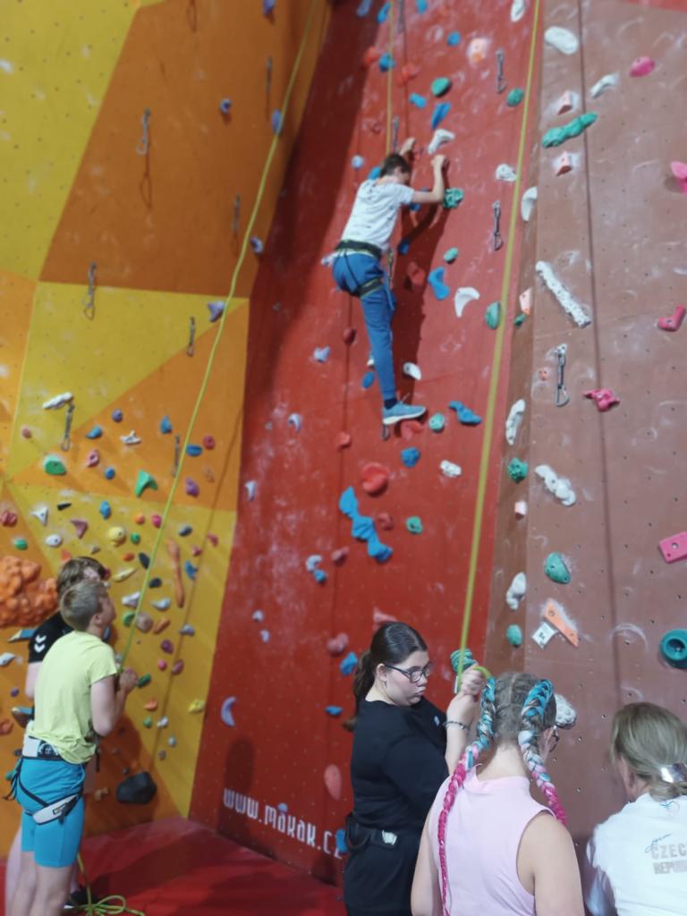 Děti si vyzkoušely jak lezení na laně, tak boudlering. Dopoledne plné překonávání vlastních limitů, vzájemné podpory a jištění bylo parádním zakončením předposledního školního týdne.
