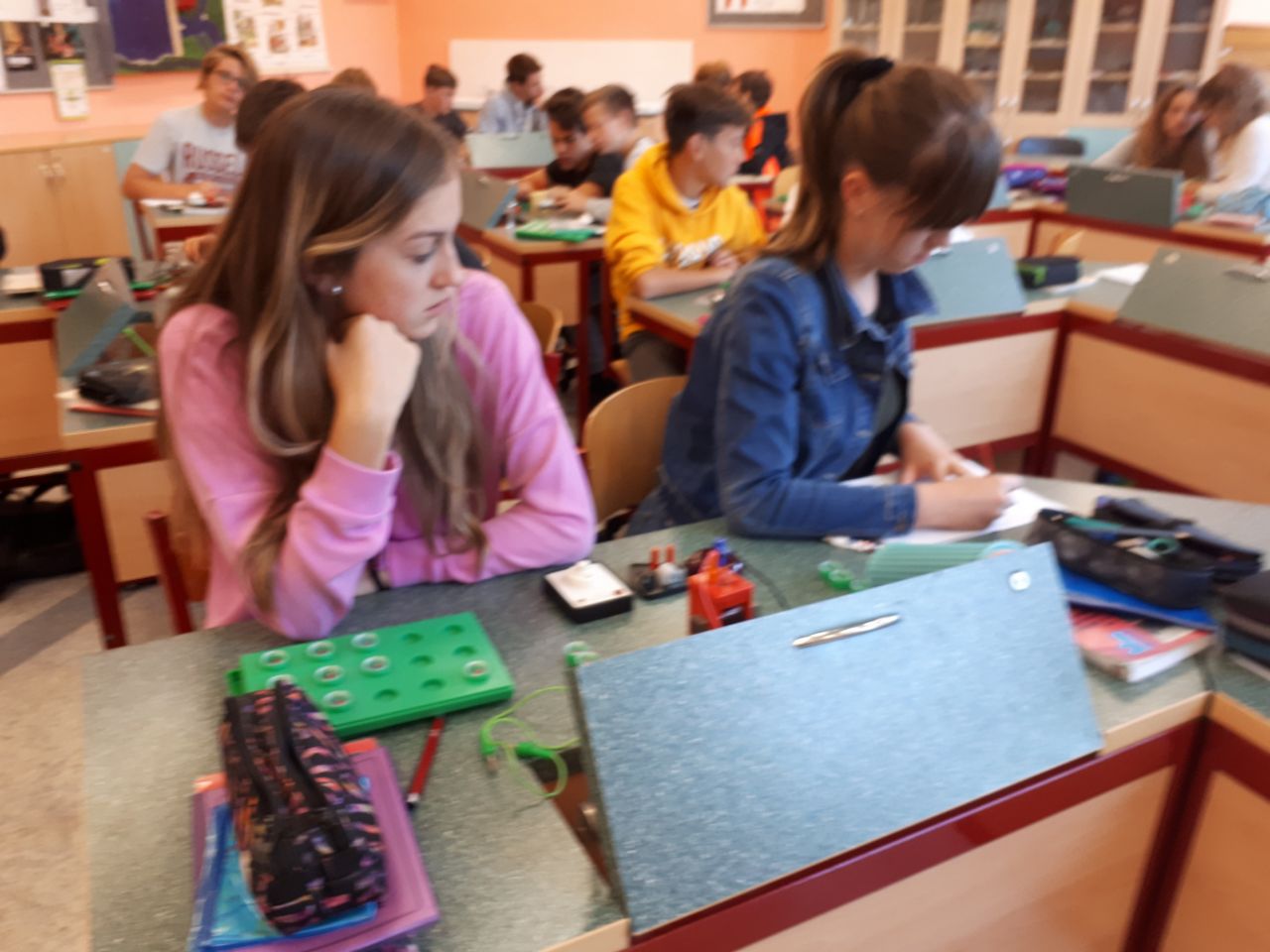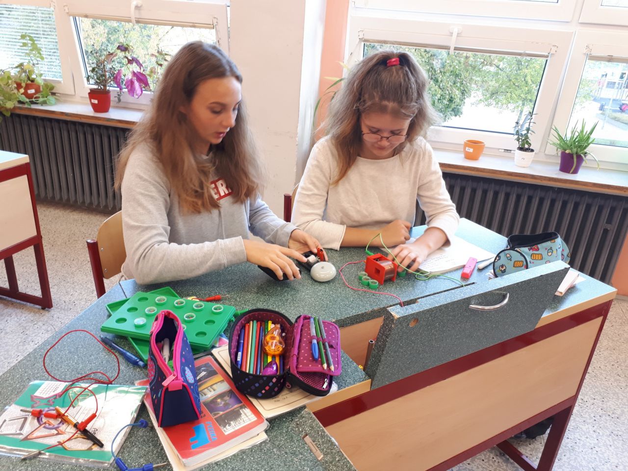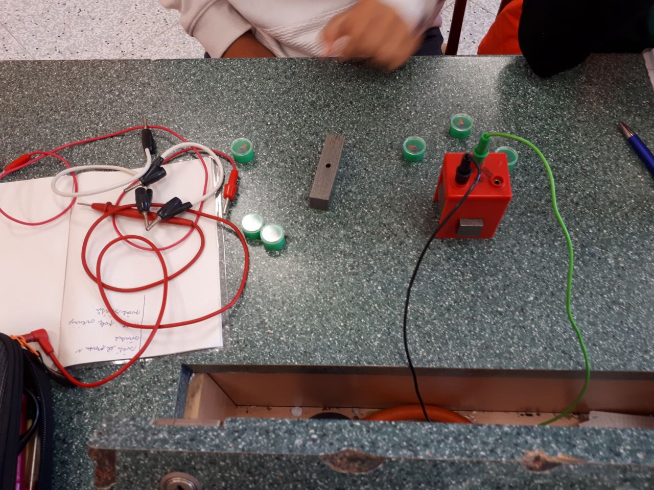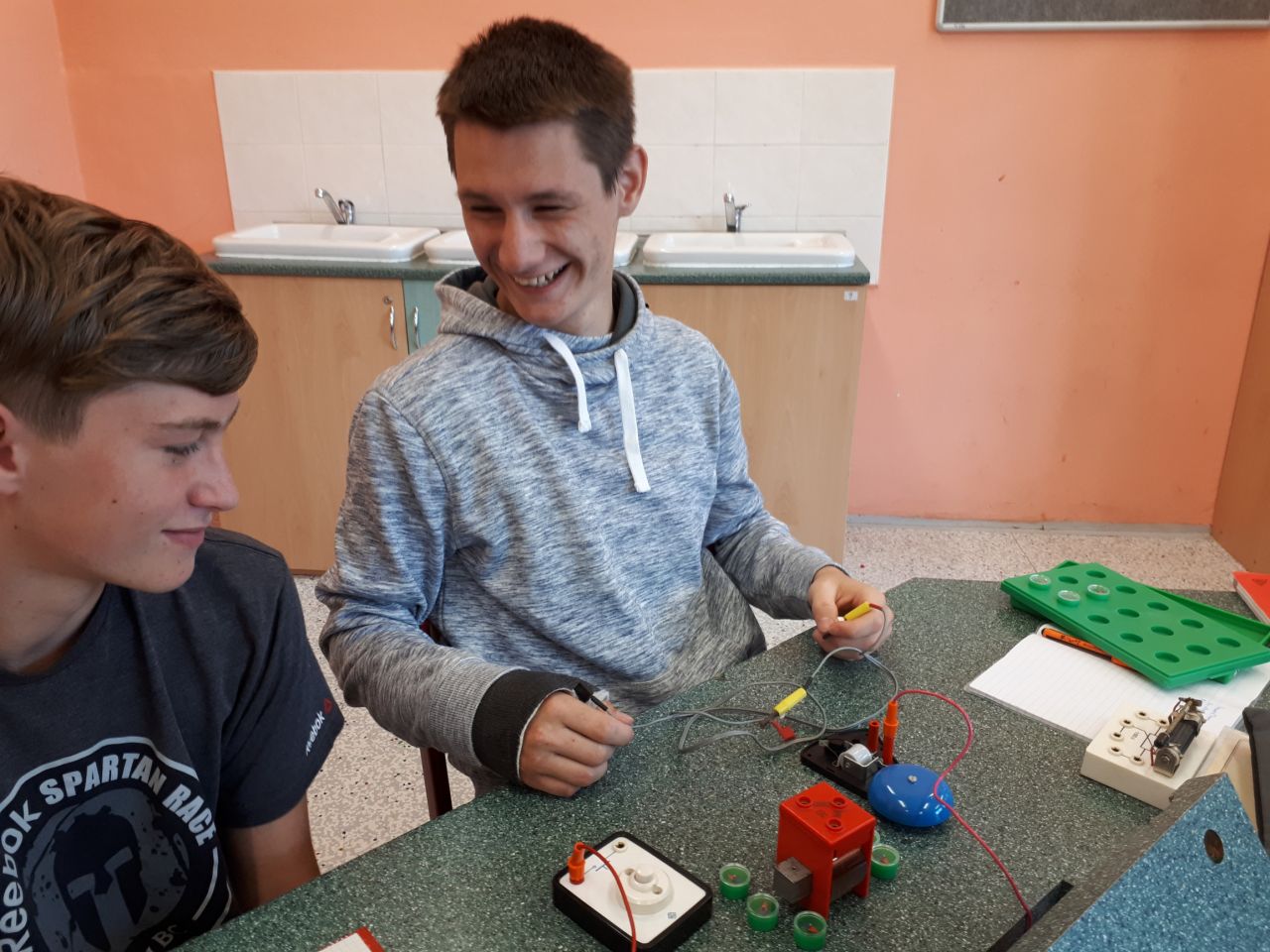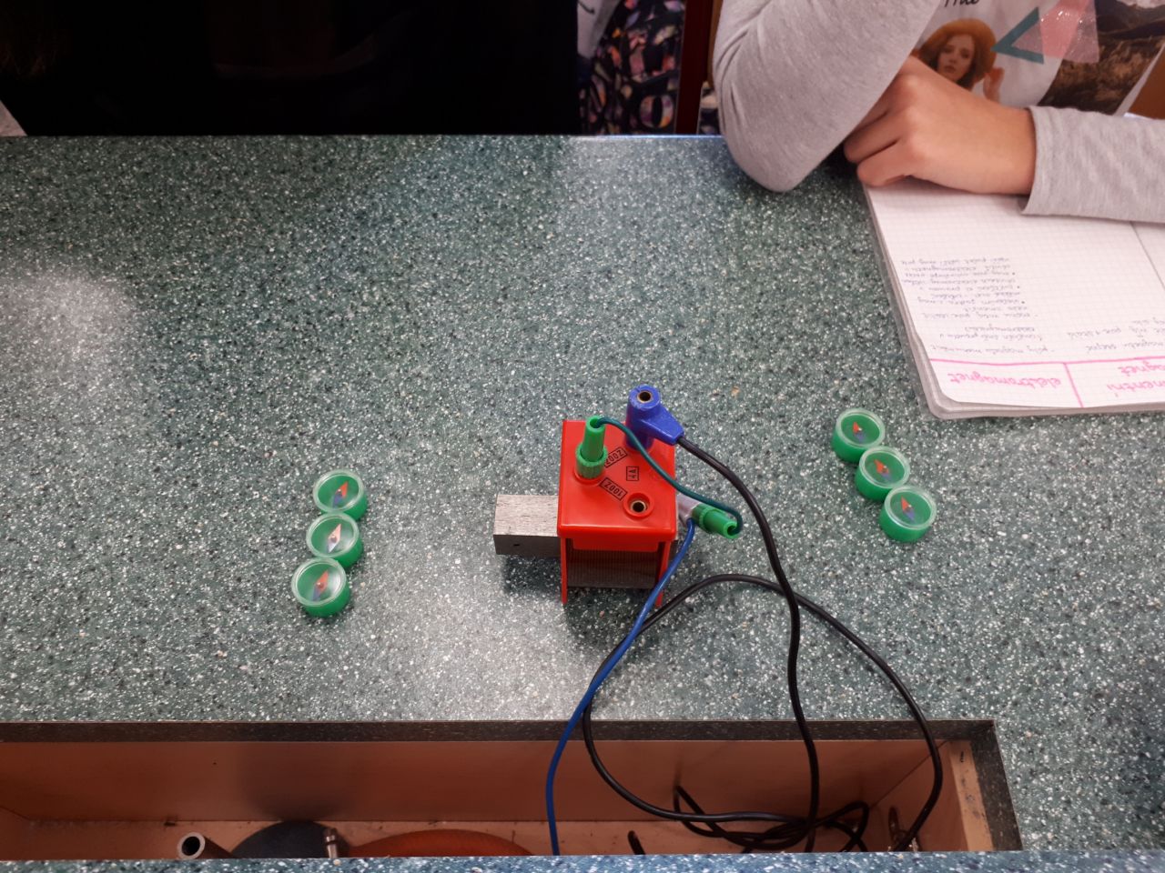 Deváťáci se pustili do zkoumání magnetického pole - nejdříve zkoumali stále magnety a magnetky, jak působí na na sebe vzájemně a jak velkou vytváří magnetickou sílu. A pak začali porovnávat s elektromagnetem. Na vlastní "oči " se přesvědčili o výhodách elektromagnetu. Zkoušeli měnit počty závitů, procházející el. proud, vkládat jádro do cívky a zkoumáním magnetického pole zjistili, že všechny tyto hodnoty mohou zvětšit nebo zmenšit magnetické pole.