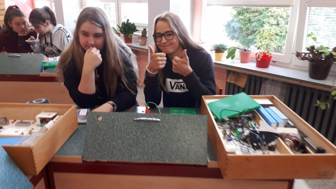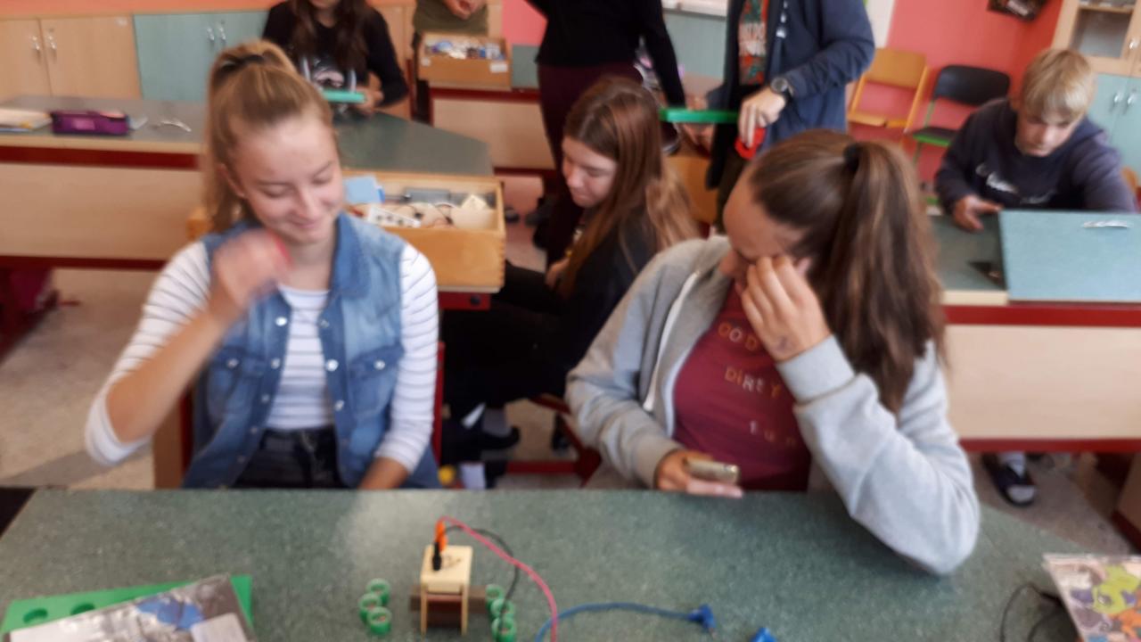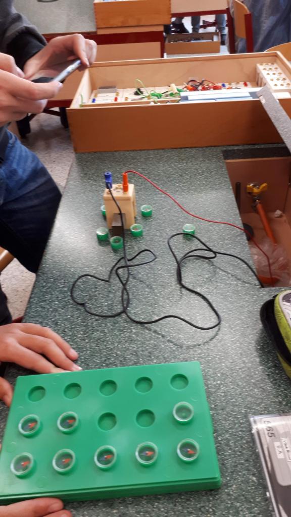 9.AB opět pojala fyziku praxí. Děti si vytvořily malé elektromagnety z cívek a jádra. Postupně měnily na jádru cívky s různými počty závitů a zjišťovaly , jak počet závitů ovlivní velikost mag. pole. Pomocí reostatů měnily velikost procházejícího proudu v elektromagnetu a pomocí magnetek zjišťovali velikost magnetického pole. Ověřily si, že mag. pole lze u elektromagnetu na rozdíl od trvalého magnetu zrušit.Také se snažily získat informace o využití el.magnetů v životě.