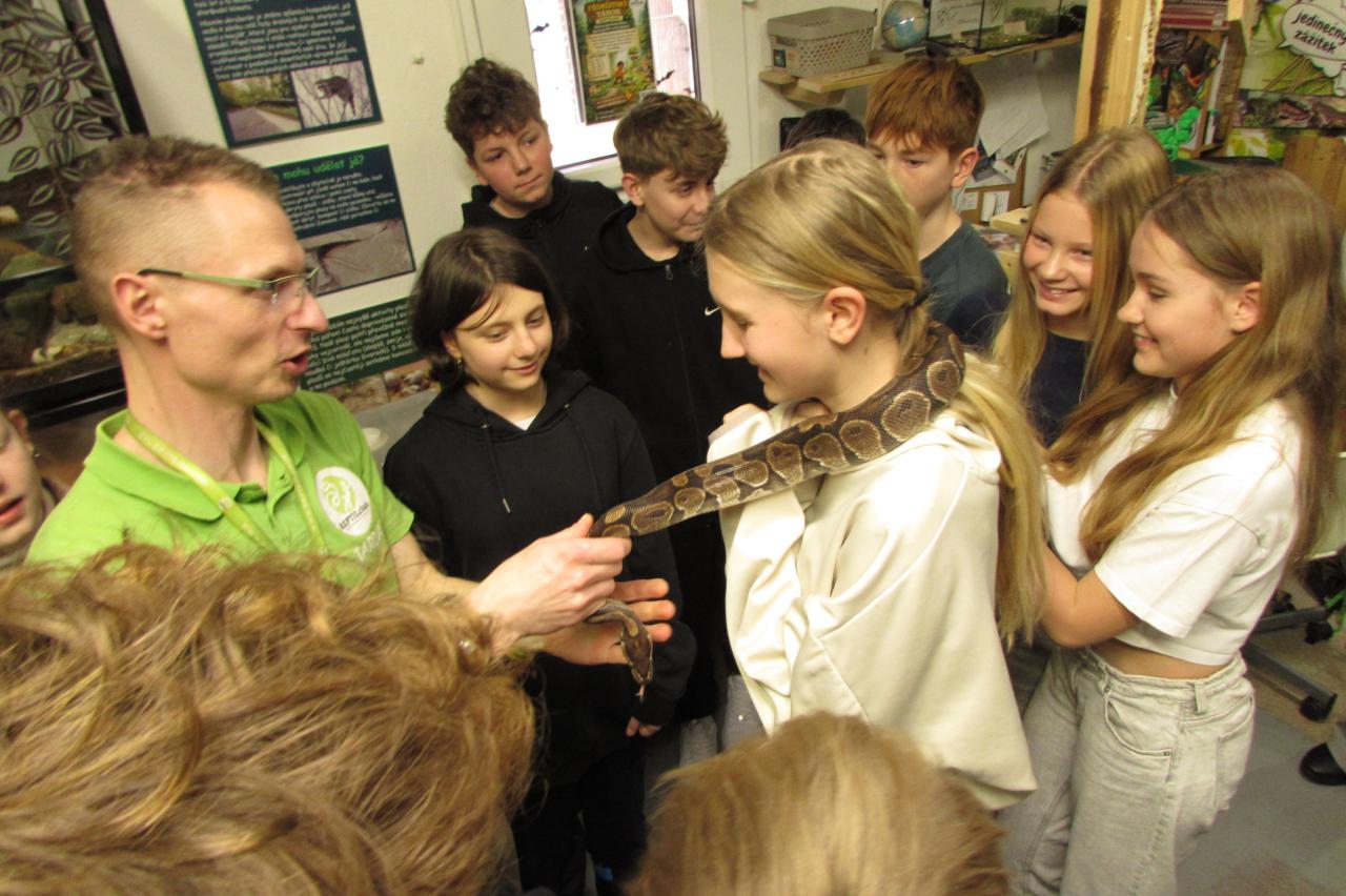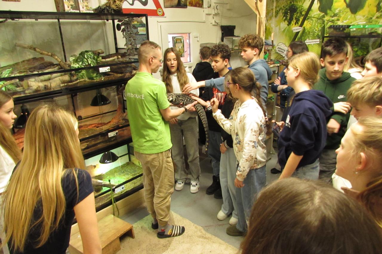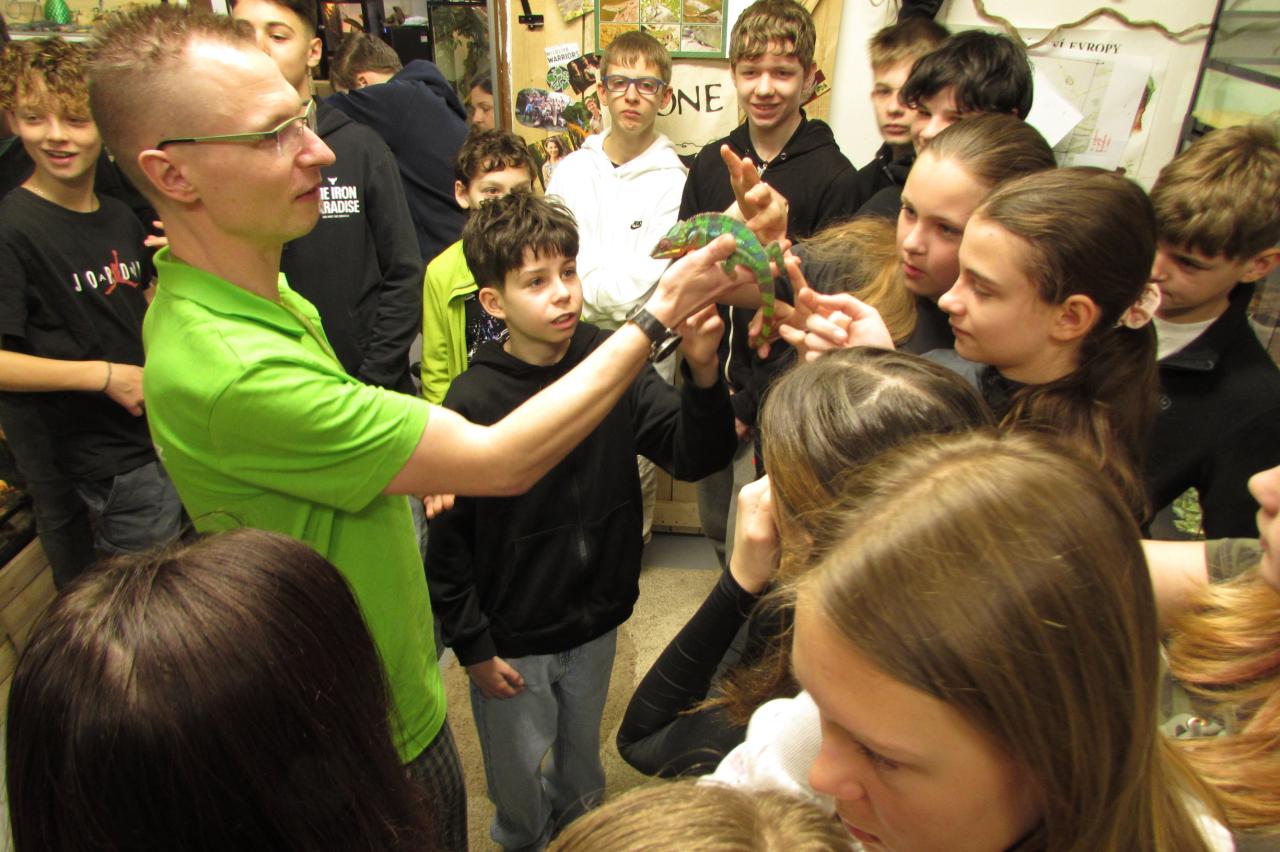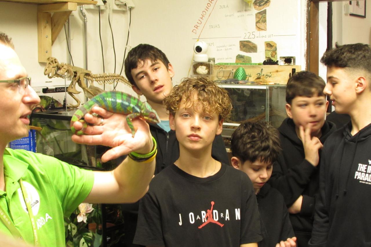 Žáci 7. ročníku vyměnili školní lavice za fascinující prostředí chovatelského oddělení SVČ Domeček v Chomutově. Cílem naší exkurze bylo blíže poznat život plazů, o kterých se často učíme jen z obrázků.