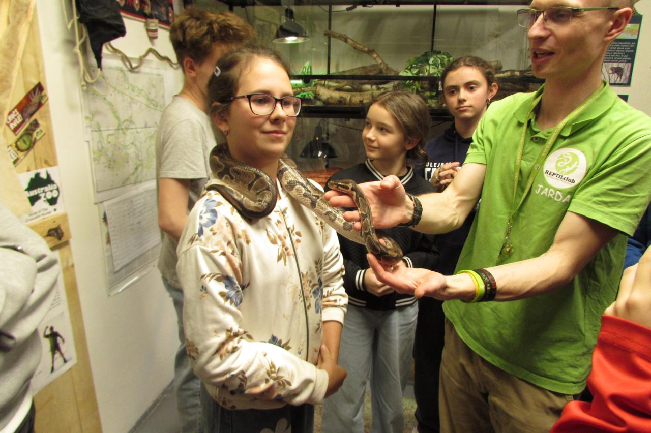 Průvodcem nám byl uznávaný odborník pan Jaroslav Forejt, který svým poutavým vyprávěním dokázal nadchnout i ty, kteří k šupinatým obyvatelům terárií původně cítili respekt. Žáci se dozvěděli o specifických nárocích na chov hadů, ještěrů i želv, o jejich biologických biorytmech i fascinujících přizpůsobeních na různá prostředí.