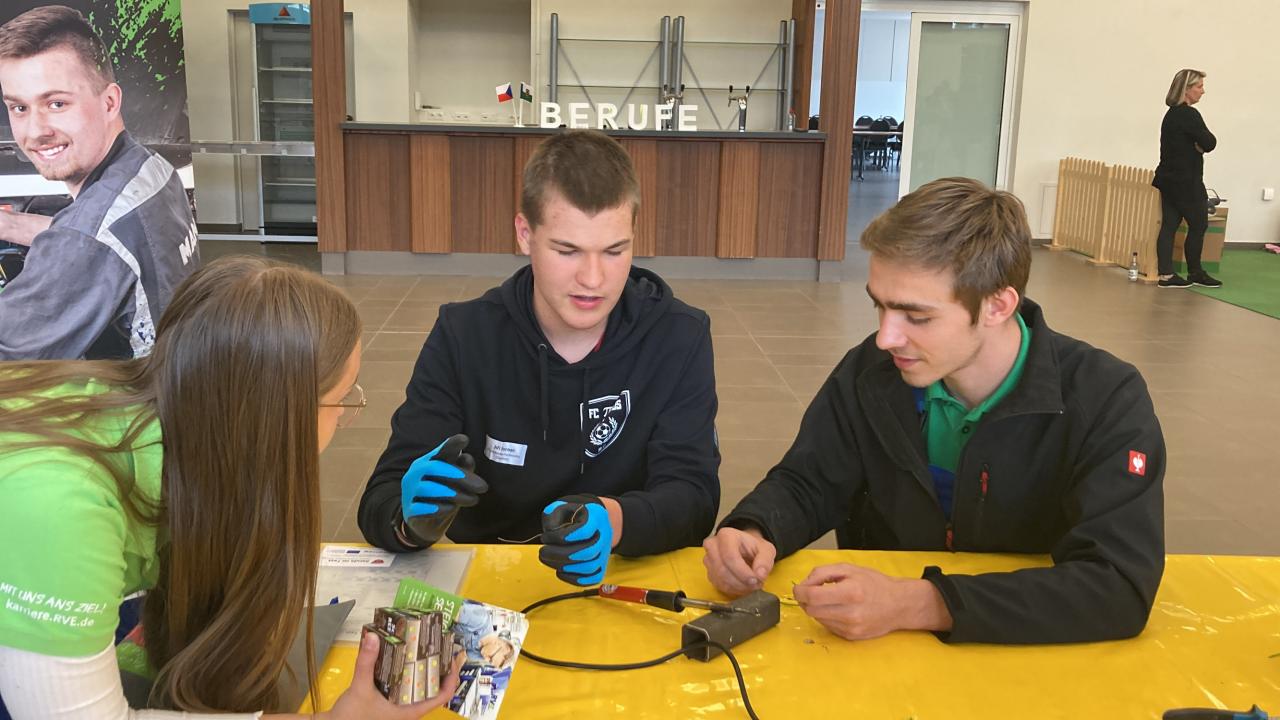 Poté si děti ve Festhalle v Annaberg-Buchholz vyzkoušeli formou „Speed Dating“ aktivity připravené německými firmami. Za deset minut na každém stanovišti si děti stihly vyzkoušet třeba povolání zdravotní sestry, zubaře, chirurga nebo pokojské, elektrikáře a mnoho dalších.