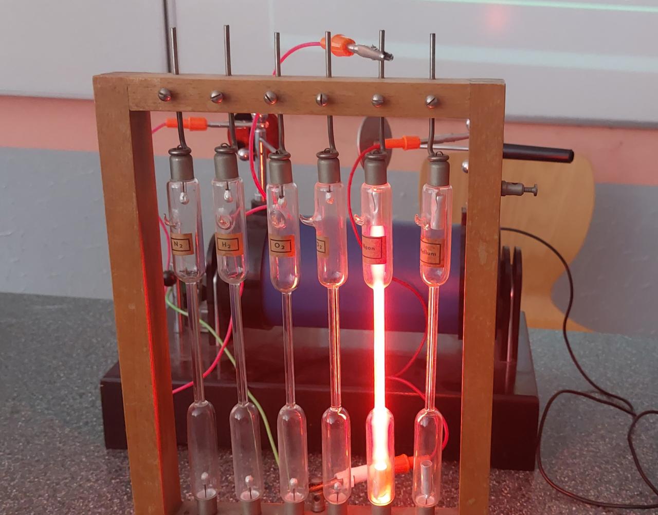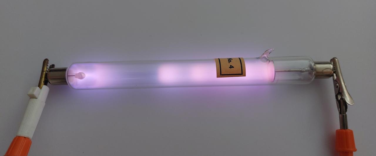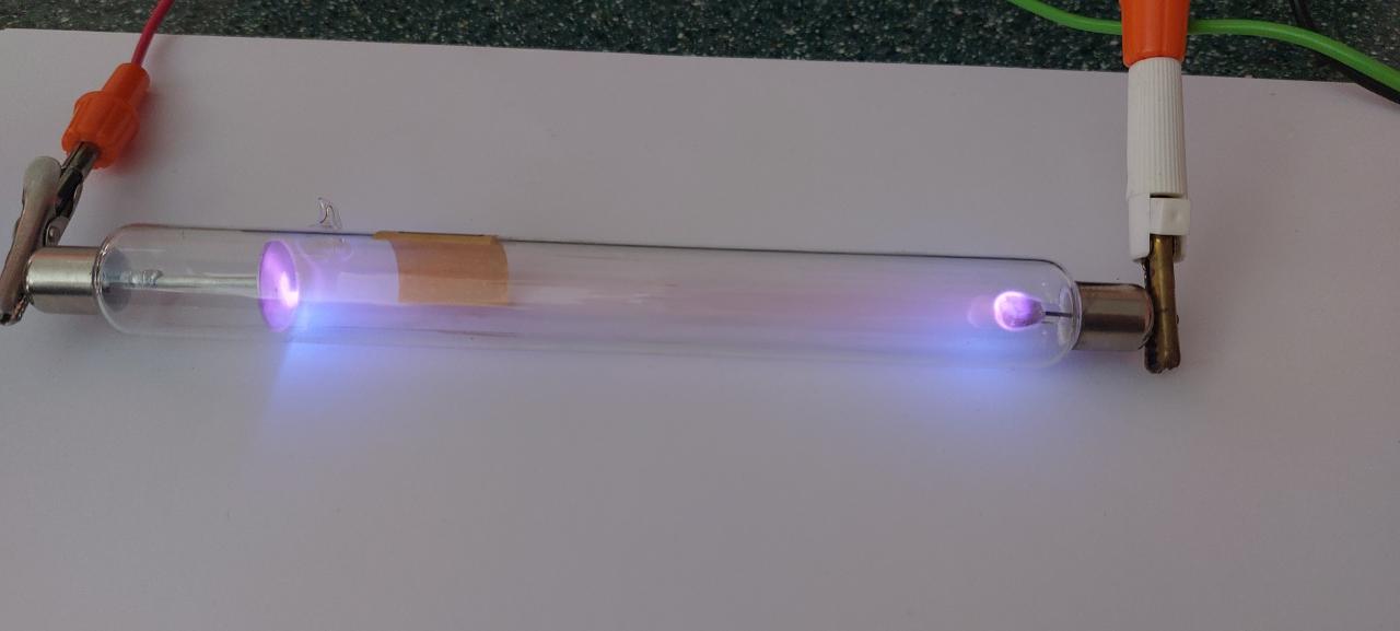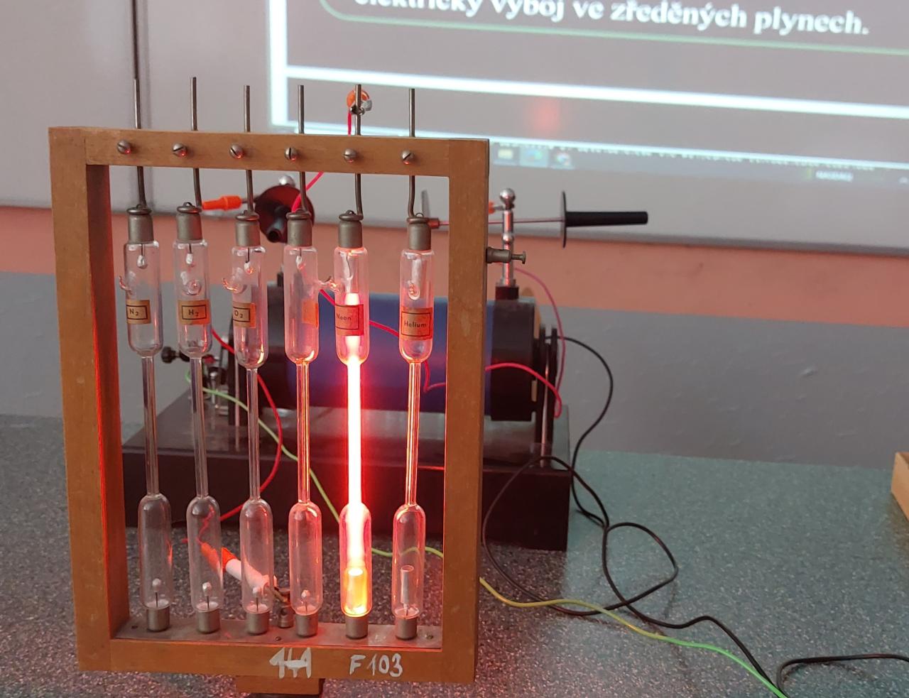 Žáci 9. ročníku zkoumali výboj v plynech při sníženém tlaku - dusík, helium, kyslík, neon, oxid uhličitý, vodík. Dalším experimentem byl doutnavý výboj v plynech, který způsobují srážky iontů s neutrálními molekulami plynu.