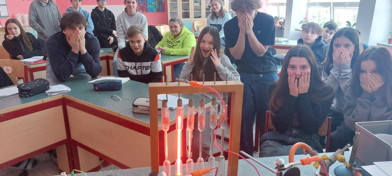 Žáci 9. ročníku zkoumali vedení elektrického proudu v plynech.