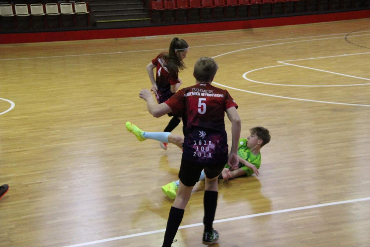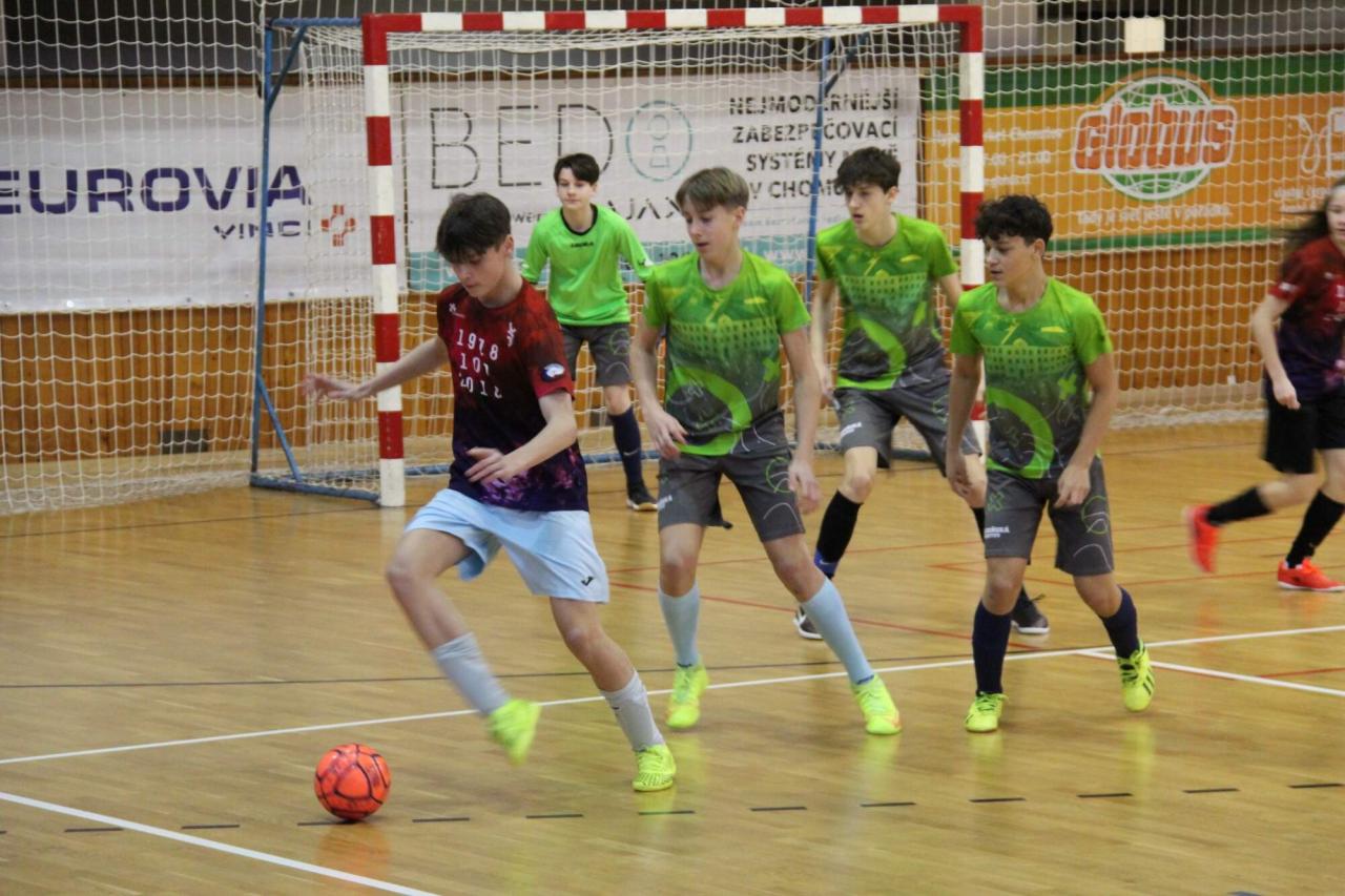 Finále Žákovské futsalové ligy, do kterého se naše družstvo probojovalo po výborných výkonech v základní skupině, kterou vyhrálo, nezastihlo naše reprezentanty v optimální formě. Deváťáci Vojta Fodor a Tomas Karásek se převlékali do dresů ze společenského oblečení, neboť na turnaj jeli hned z divadla a málem ani nestihli začátek utkání.
