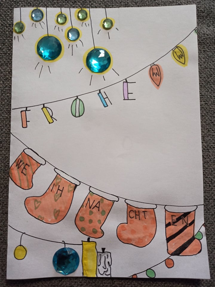 I na hodinách německého jazyka jsme popustili uzdu fantazii a vyrobili pro své blízké přáníčko. Přejeme Frohe Weihnachten všem!