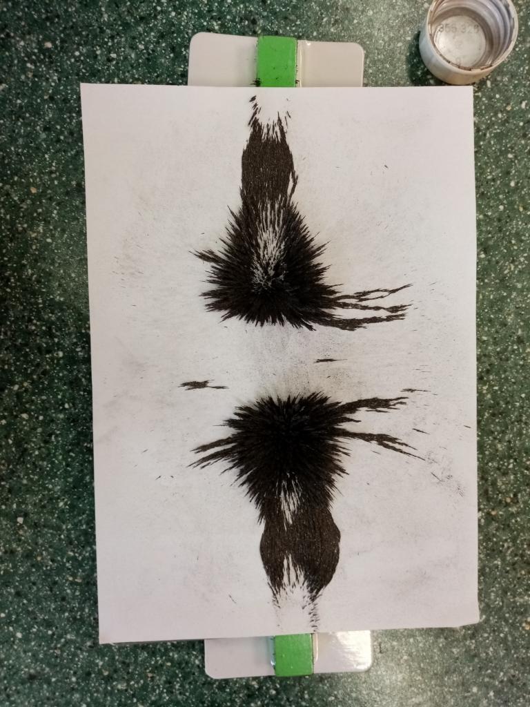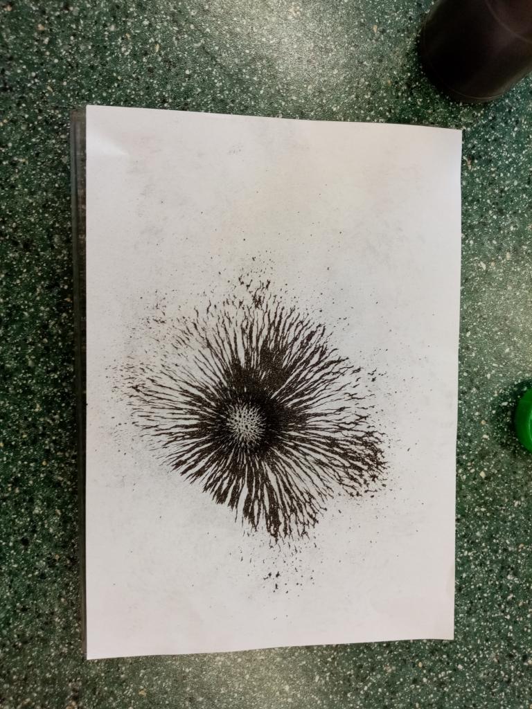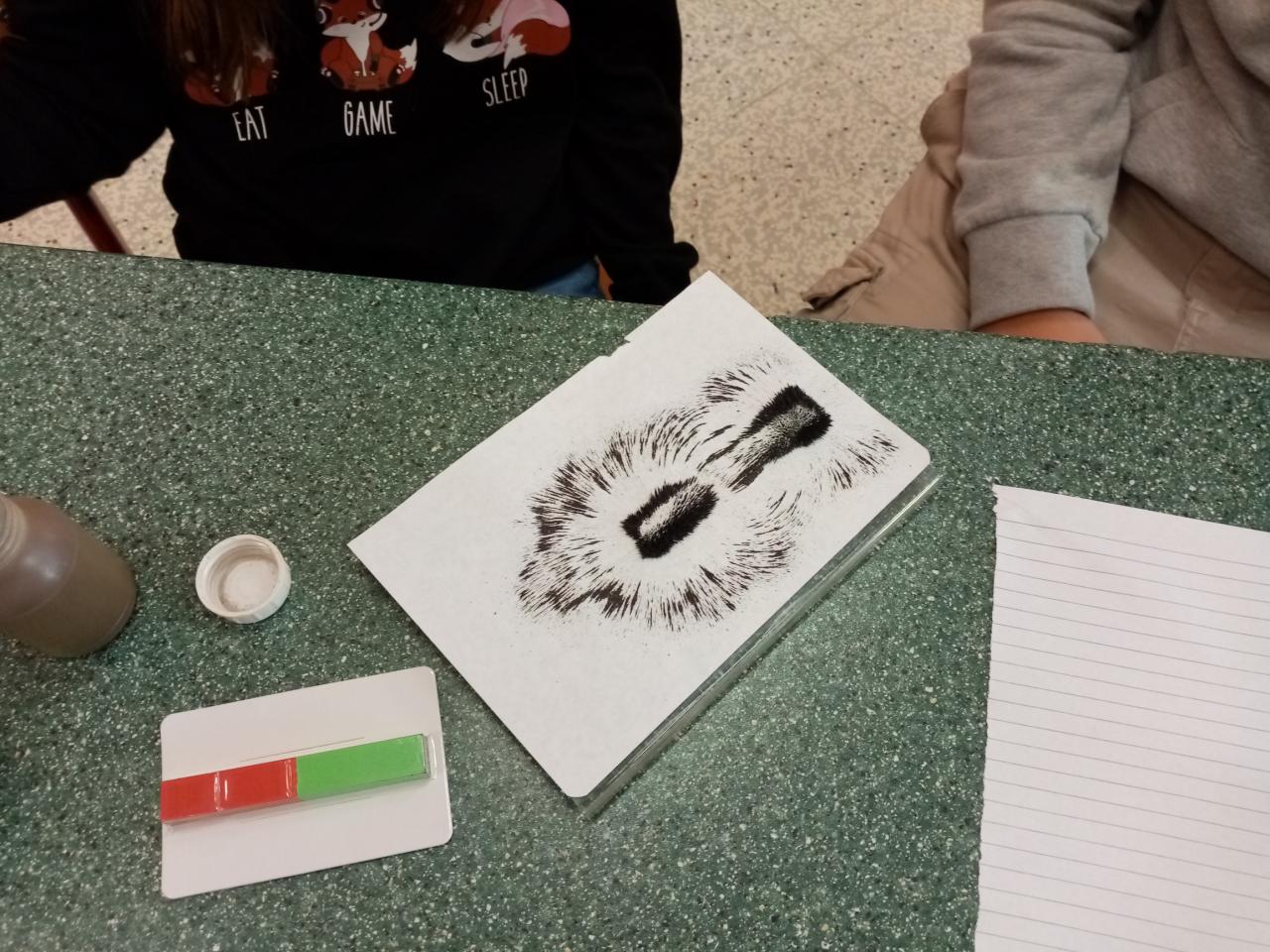 Magnetické indukční čáry zkoumaly děti na fyzikálních praktikách. K dispozici měly různé typy magnetů. Výsledek zkoumání je přiložen ve fotogalerii.