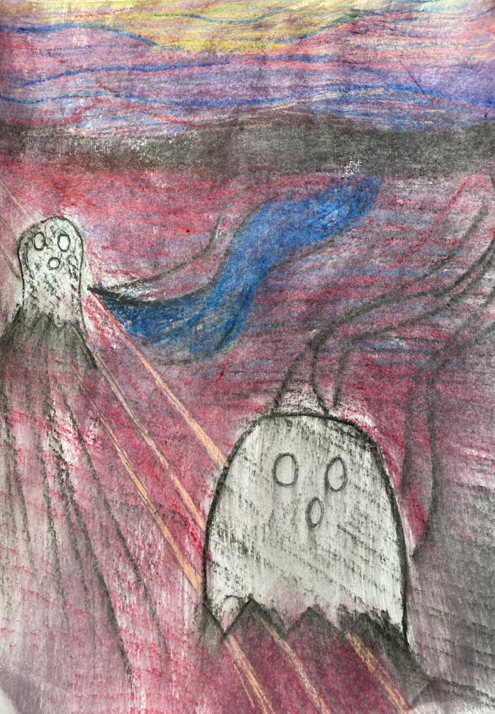 Ukázky prací z distanční výuky VV v devátých třídách.