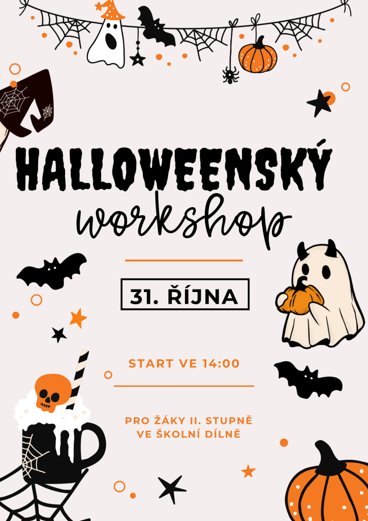 Pro žáky 2. stupně je opět připraven Halloweenský workshop. Veškeré info v letáku. Není třeba se hlásit, stačí dorazit ve stanovený čas na dané místo